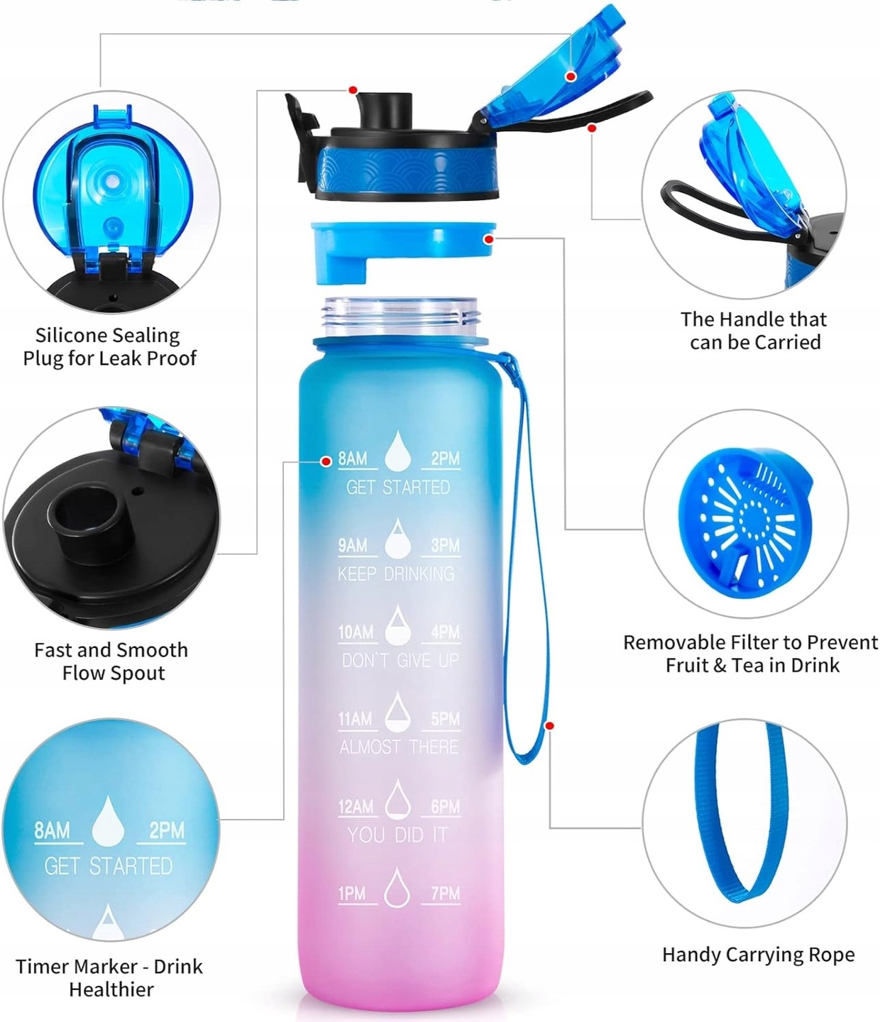 Эта неэлягирующая, легкая и повторная бутылка для использования для воды изготовлена из 100% тритана, свободного от BPA без BPA. Вы можете расслабиться и наслаждаться водой без вредных химических веществ, пластикового вкуса или неприятного запаха!