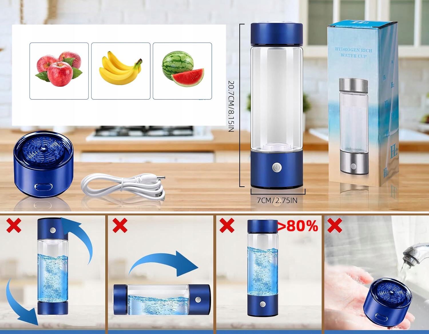 - Запуск/остановка только с одной кнопкой : бутылка для воды, богатая водородом, имеет накладные на дне, что обеспечивает стабильность и сопротивление скольжению.