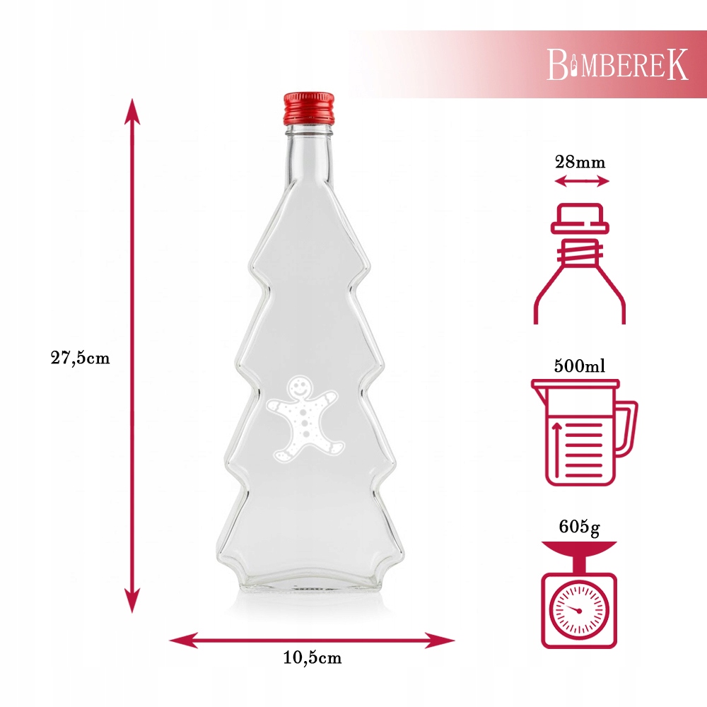 Ищете идеальный подарок или уникальный способ хранения домашних наливок или рождественских деликатесов? Наша елочная бутылка объемом 500 мл — идеальное решение! Эта бутылка с очаровательным узором в виде пряничного человечка и крышкой привнесет рождественское настроение в любую обстановку!