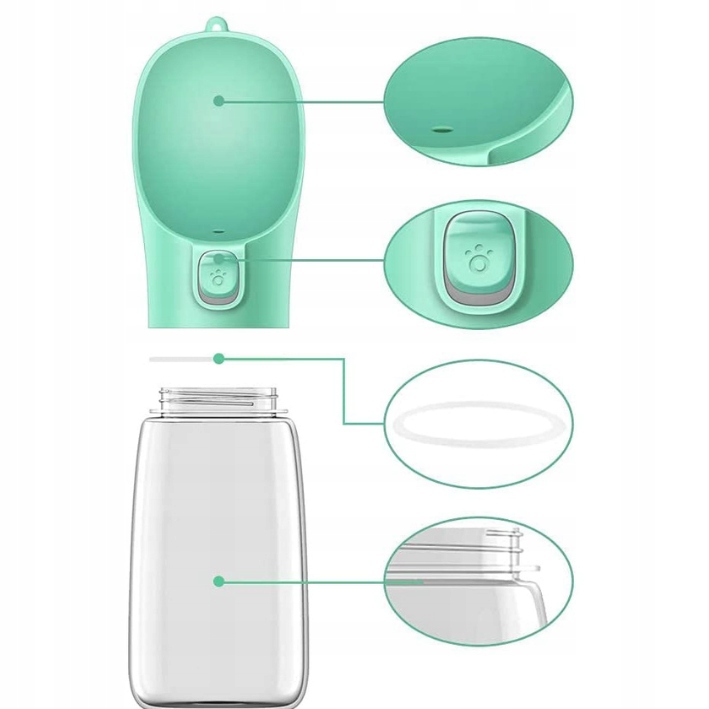 Практическая бутылочка для воды для собак с миской, идеально адаптированной к потребностям наших питомцев.