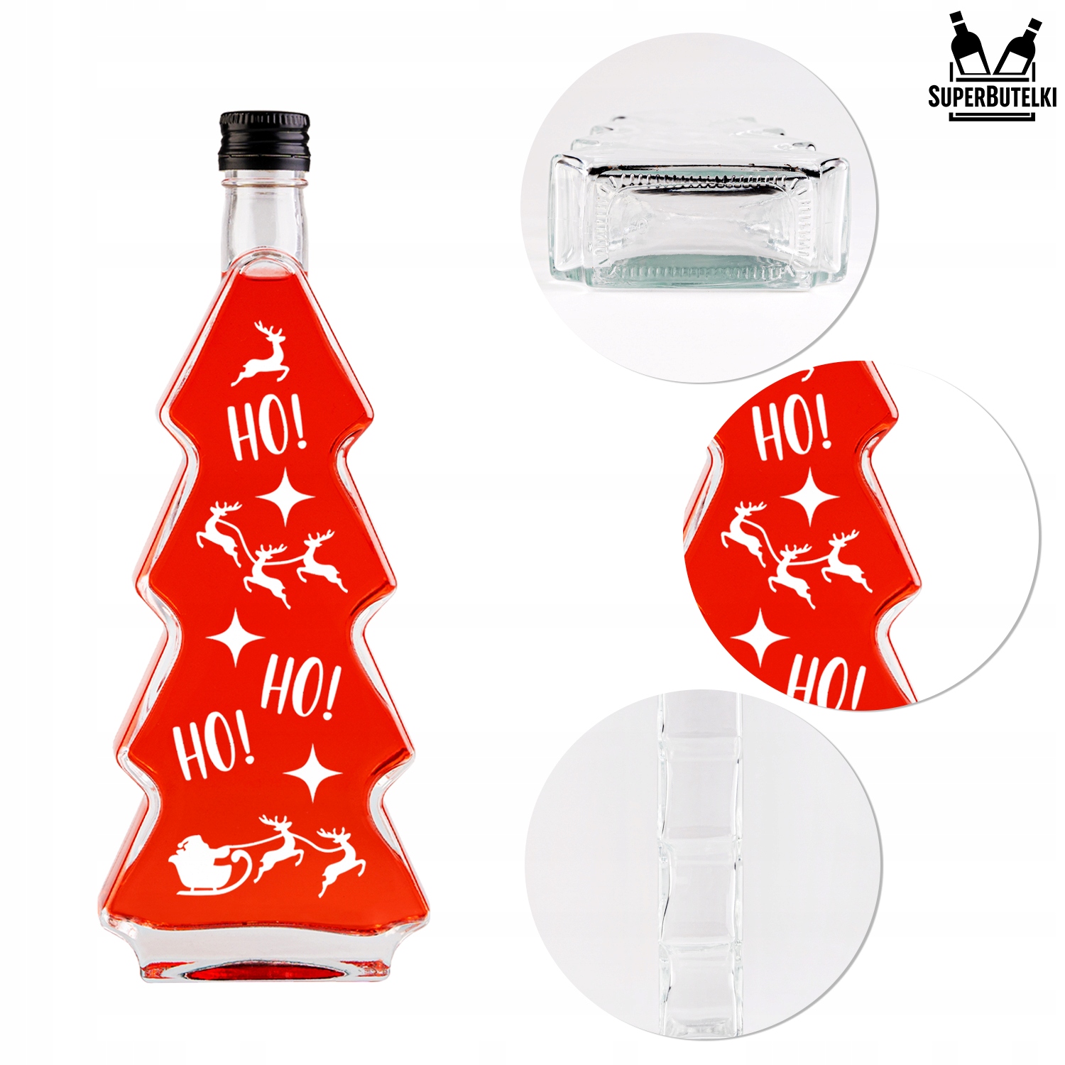 Стеклянная бутылка «Рождественская ёлка» РОЖДЕСТВЕНСКАЯ ЁЛКА 500 мл С РОЖДЕСТВЕНСКИМ ПРИНТОМ HOHOHO БЕЛАЯ