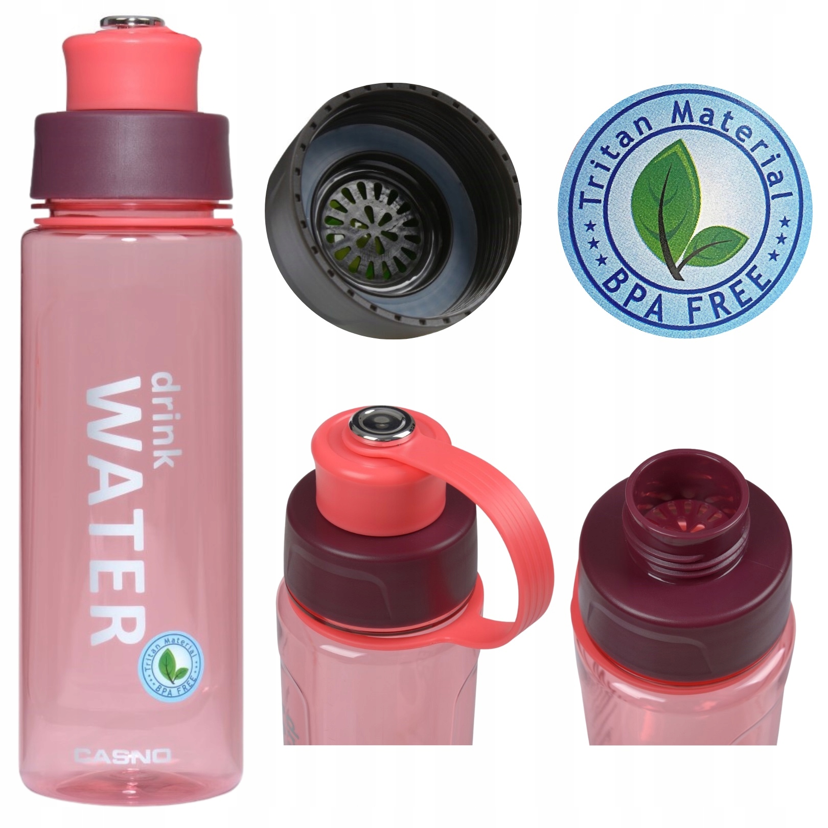 · Представленная модель была сделана из высококачественного tritan . Этот материал характеризуется высоким сопротивлением . Это означает, что даже при высокой температуре он не реагирует с содержанием бутылки. Благодаря этому вам не нужно беспокоиться о том, что вода или ваш любимый напиток внезапно изменит вкус и запах. Tritan не содержит вредных соединений , которые включают бисфенол A. Это особенность, которая отличает нашу бутылку от многих подобных продуктов, предлагаемых на рынке. Бутылка с водой Casno оснащена удобным мундштуком и плотным закрытием из полипропилена. Заглушка постоянно прикреплена к корпусу, что предотвращает случайную потерю гайки. Кроме того, бутылка оснащена фильтром , которое позволяет готовить ваши любимые инфузии и напитки со свежими фруктами.