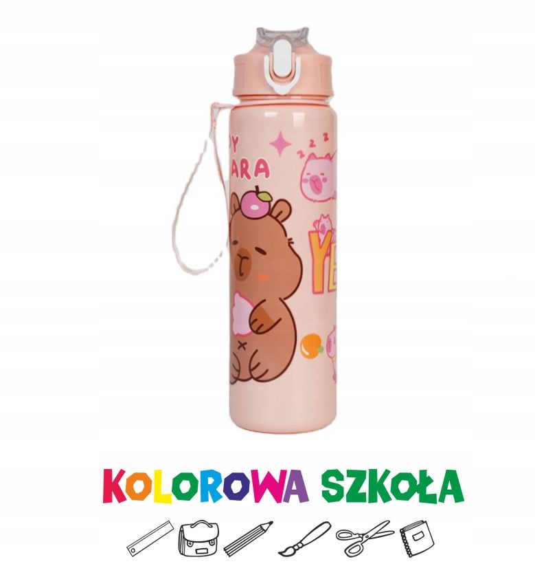 бутылка с водой 800 мл Капибара - плотная, соломой и ремнем, пастельные цвета