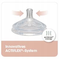 Раунд, естественная форма соски моделируется на груди матери и обеспечивает естественный и дружелюбный опыт во время питья. Spikes, и система Actiflex обеспечивает тихой поток воды и предотвращает сокращение соски. Качество производится в Германии