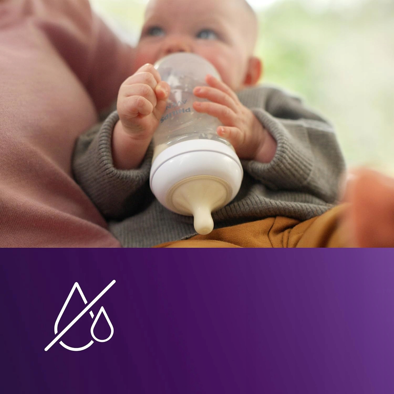 Эргономическая бутылка Philips Avent Естественный ответ легко сохранить под любой угол . Молоко вытекает только тогда, когда ребенок активно отстой. j-slit cut позволяет ребенку контролировать скорость всасывания и ритм независимо .