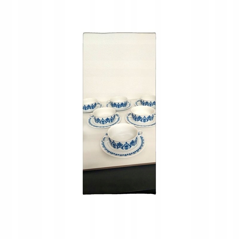 Шесть бульонных стаканчиков в очень хорошем состоянии, размеры: высота бульонницы 5 см, диаметр наполнителя 12 см, диаметр тарелки для бульонных стаканчиков 18,5 см.