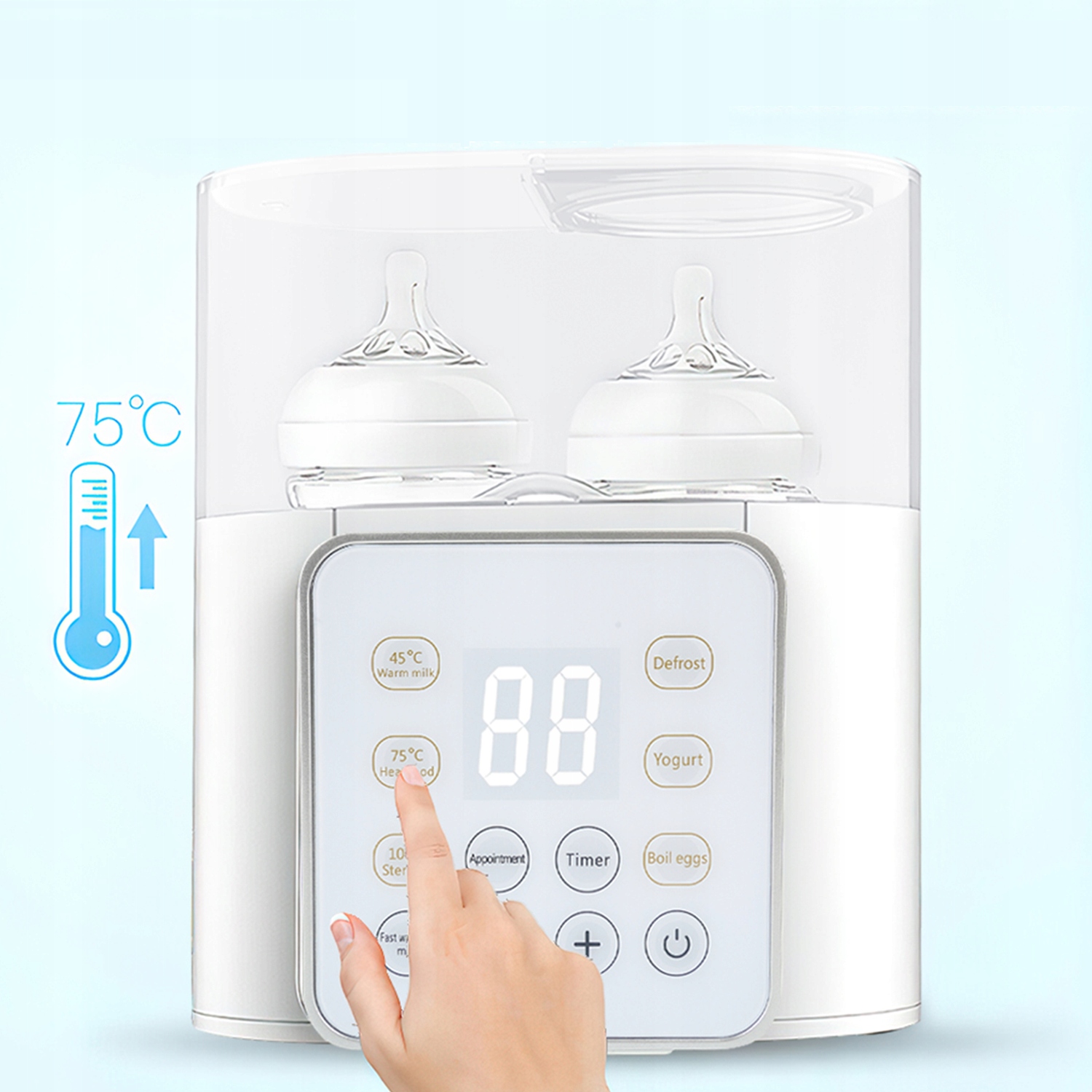 - Многофункциональный подогреватель бутылочек для младенцев с функцией быстрого подогрева молока, подогрева продуктов, стерилизации, разморозки, йогурта, яиц вкрутую, таймера, настройки встреч, круглосуточного поддержания тепла, регулировки температуры и функции автоматического отключения.