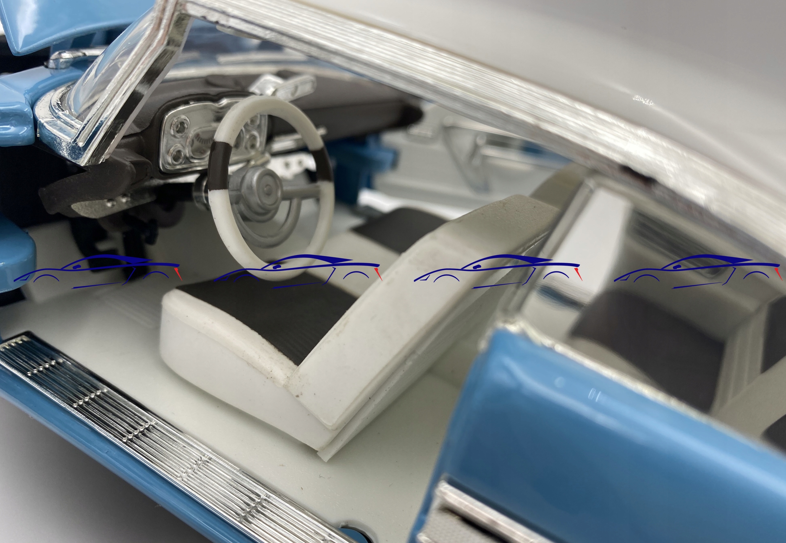 Модель автомобиля отличается вниманием к деталям. Имеет подвижные элементы – двери, крышку двигателя и багажник.