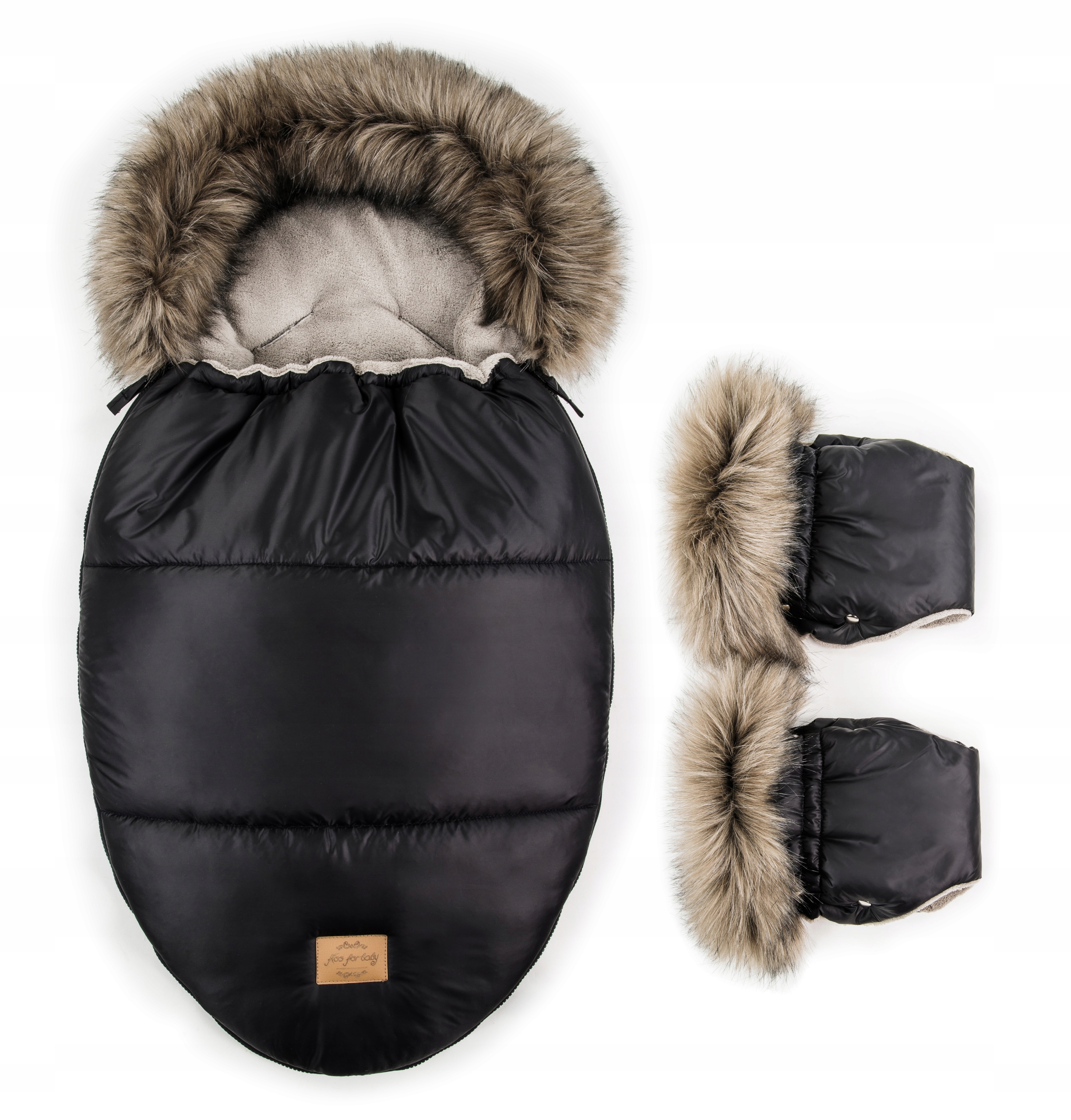- Спальный мешок + перчатки для коляски, последняя коллекция с двойным утеплителем и мехом, подойдут даже в очень морозные дни. li>