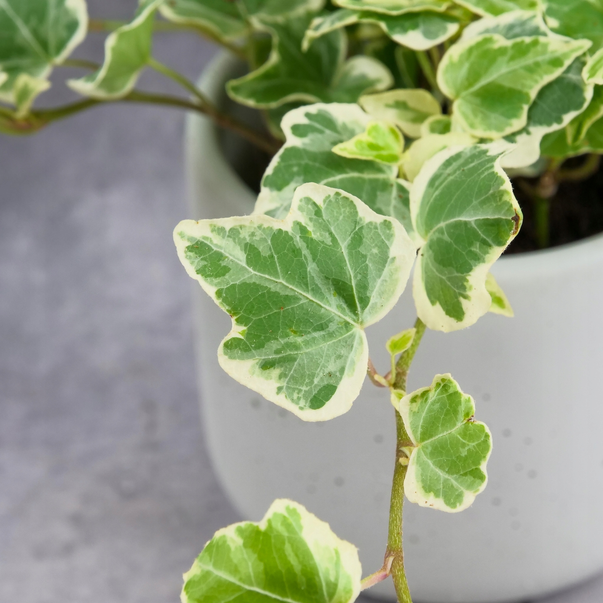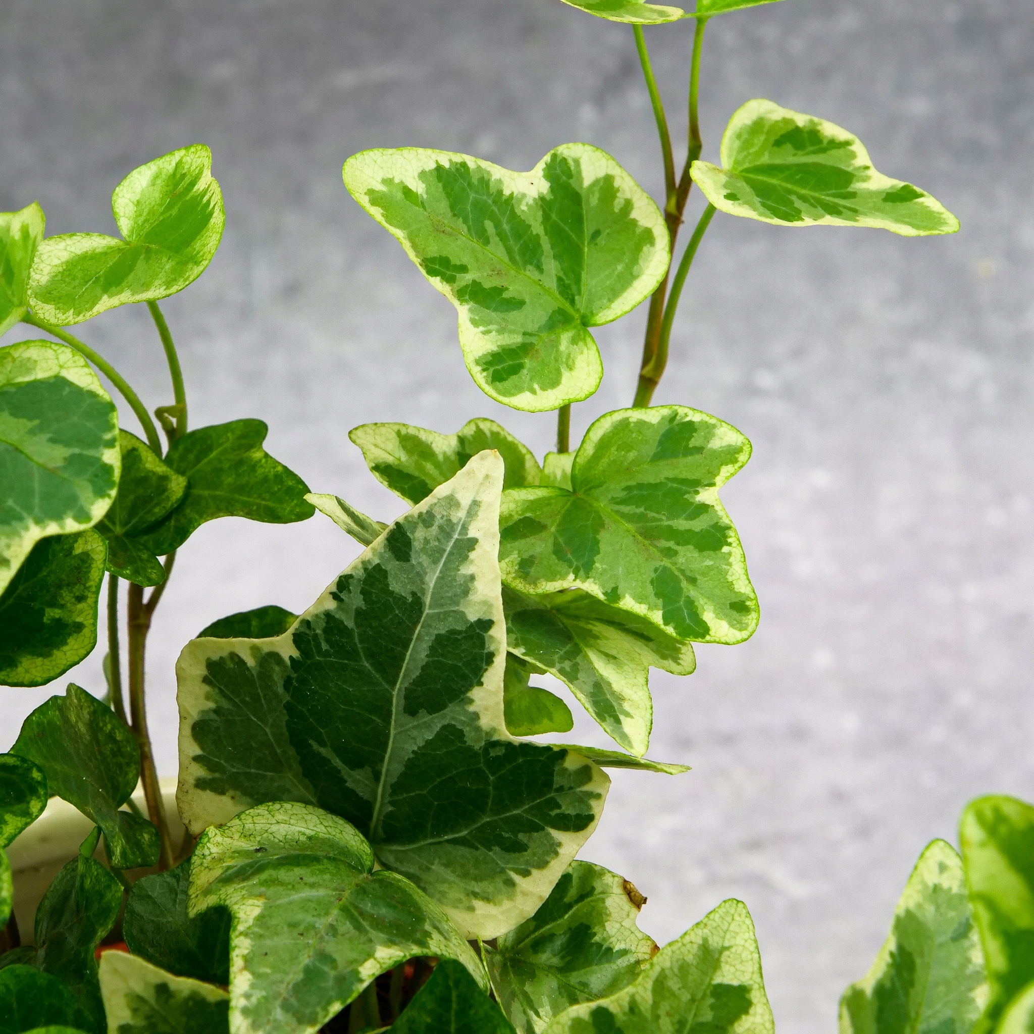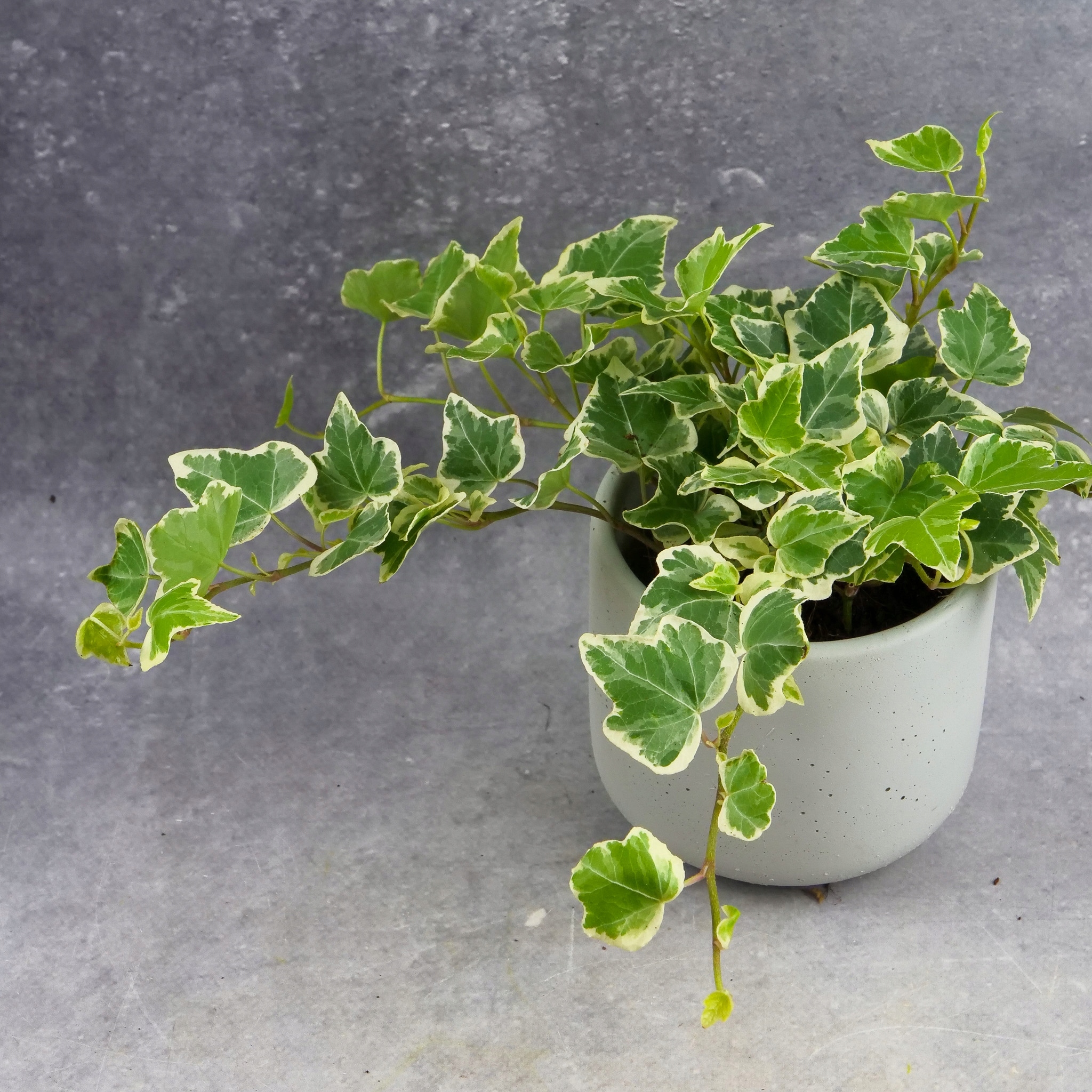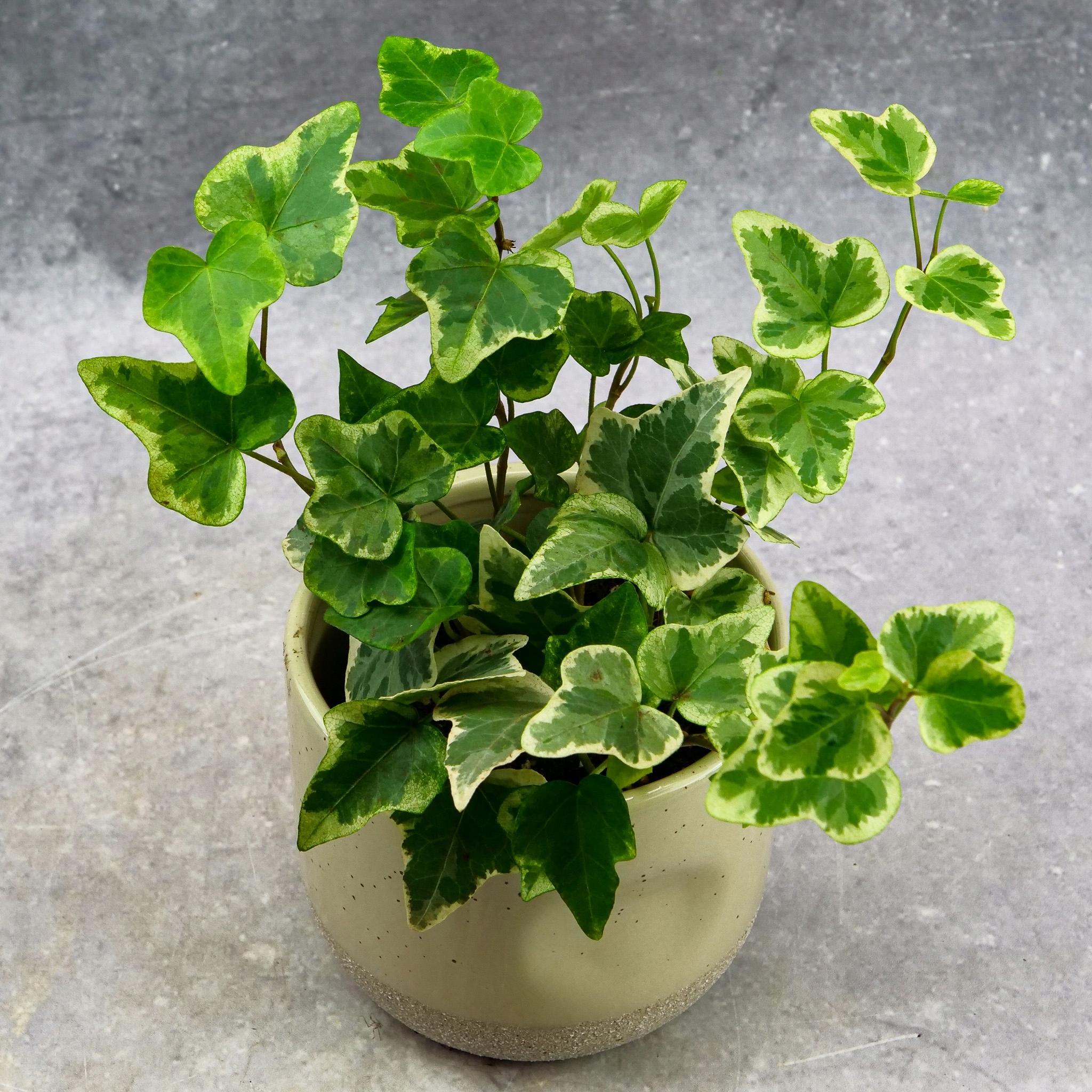 Растение хедера светлого плюща с пестролистностью в производственном горшке.
