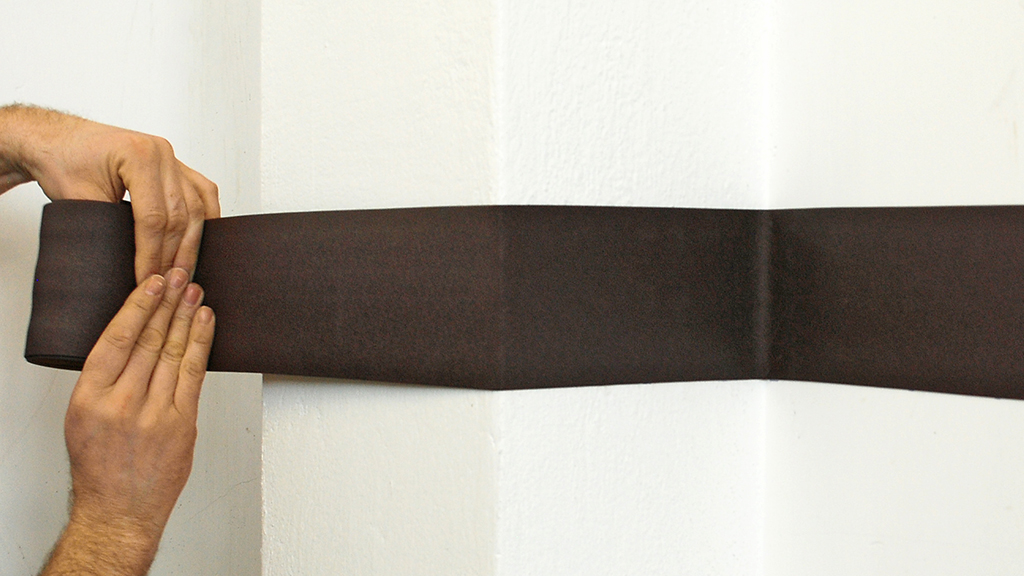 - Шаг 2 - После удаления защитной бумаги привяжите клейкий слой к земле.
