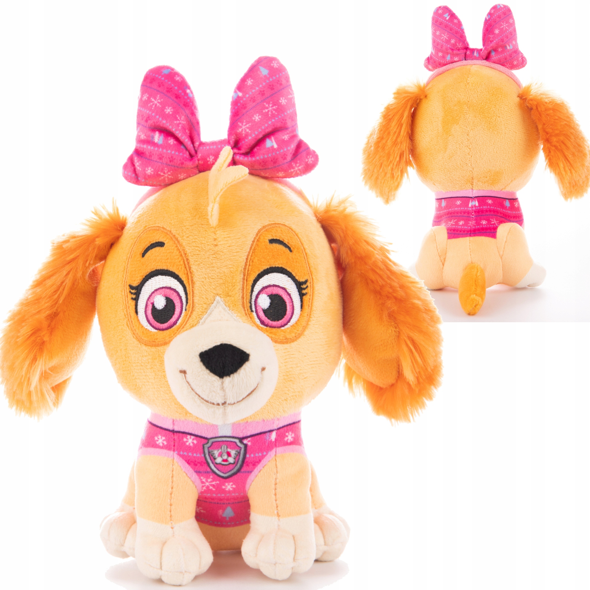 На талисмане изображена Скай — очаровательная собачка из сказки Щенячий патруль, одетая в рождественский наряд. Плюшевая игрушка высотой примерно 28 см изготовлена из мягкого, приятного на ощупь материала. У Скай характерные розовые глаза и широкая дружелюбная улыбка.