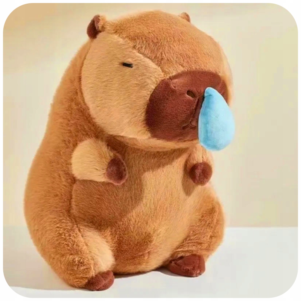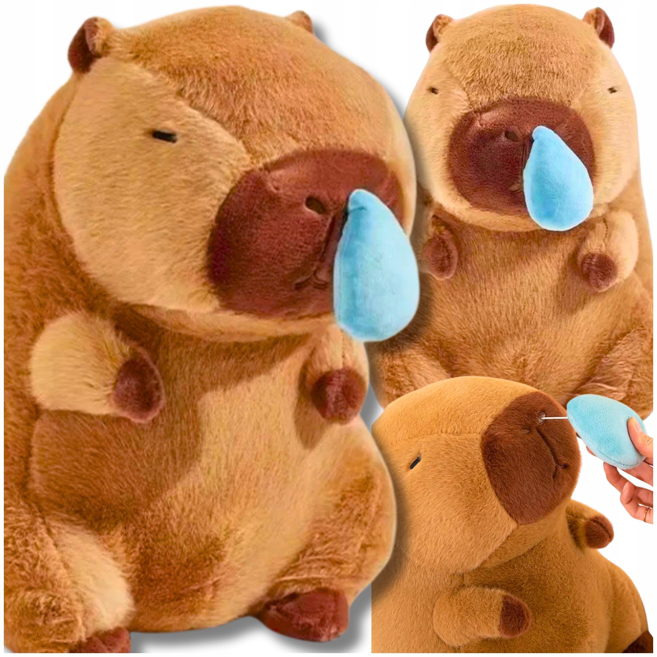 Капибара — необычная игрушка. У нее на носу есть капля, которую можно потянуть. После выпуска растянутой капли игрушка легко вибрирует и издает звуки, как будто храпит. Настоящая спящая капибара!