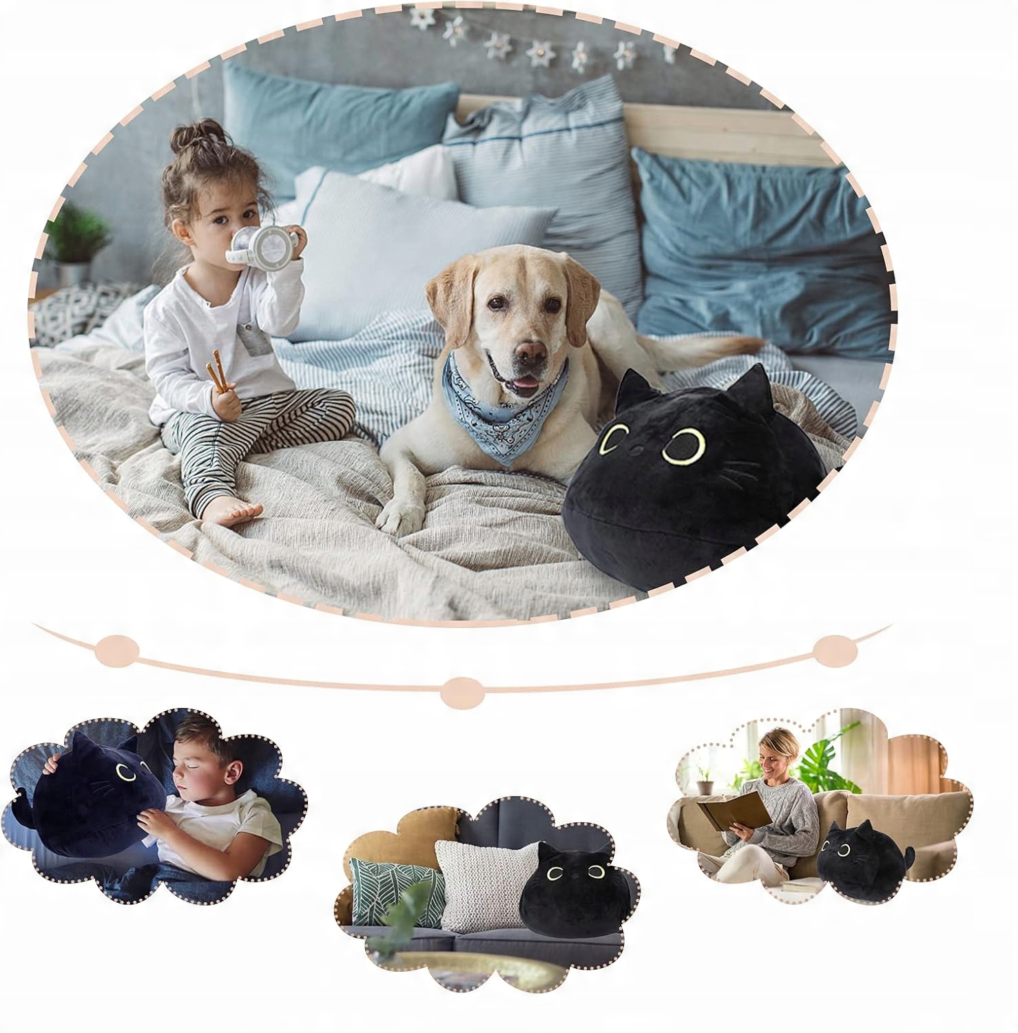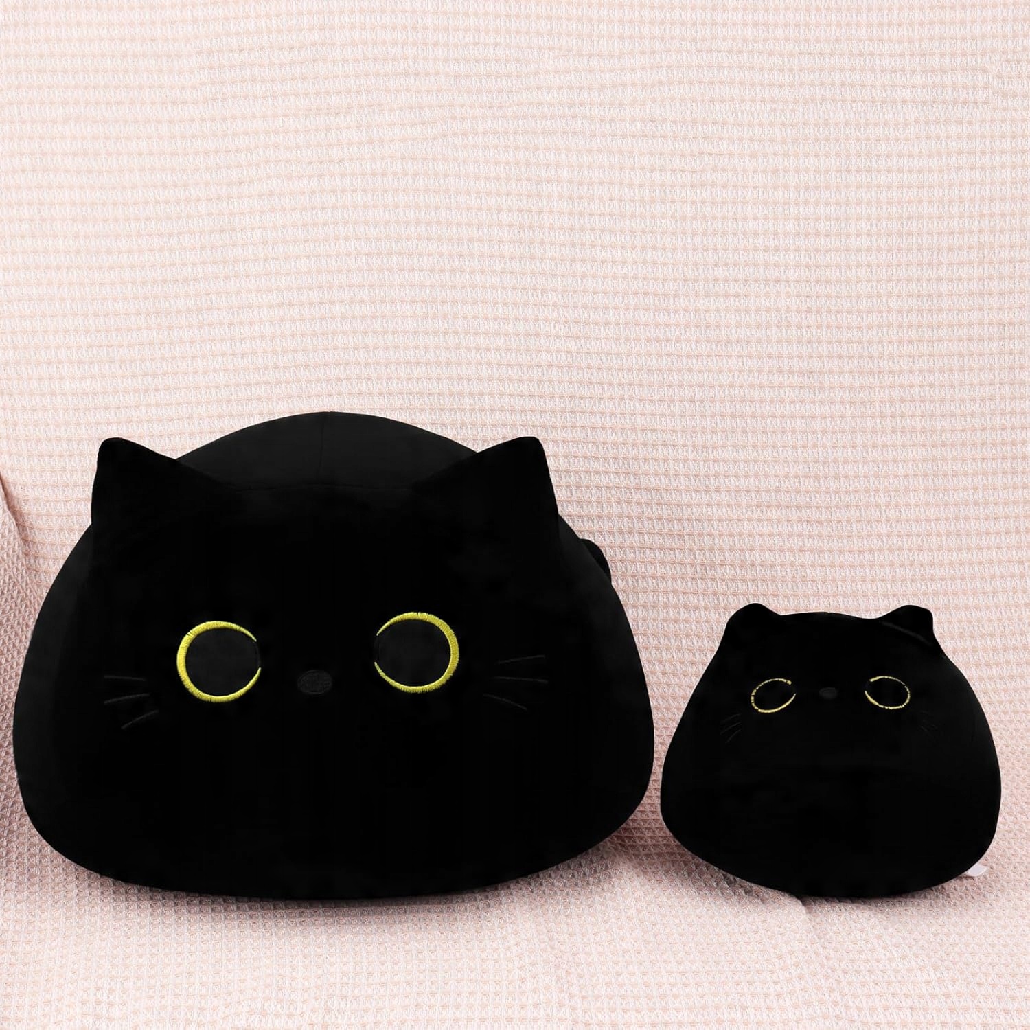 👍👍👍 Многократное использование: Нажатие на эту мягкую плюшевую игрушку можно использовать для снятия стресса. Можно использовать как декоративную подушку/подушку для сна/подушку для сна в офисе. Поскольку черный цвет очень устойчив к пятнам, вы также можете разместить его на своей кровати, диване, машине, балконе, коляске или где угодно, принося тепло и любовь в ваш дом.