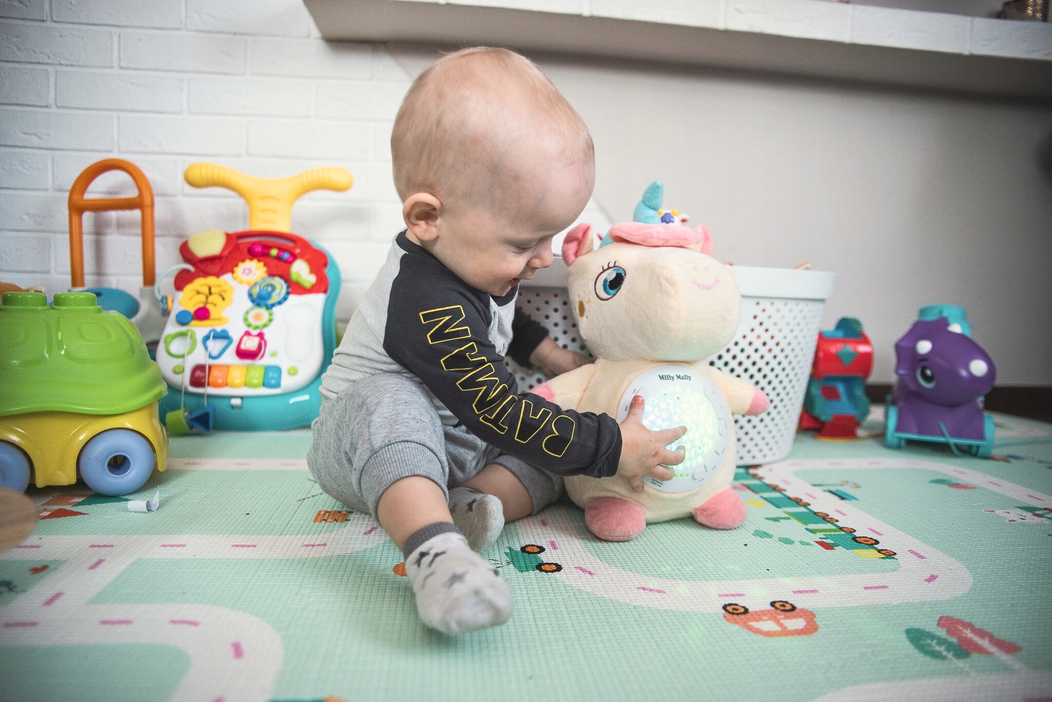 плюшевая игрушка с проектором-milly является незаменимым инструментом для родителей, который полезен для успокоения или сон. После запуска проектора Milly мы услышаем 10 мелодий колыбельного случайно выбранного, в то же время он будет отображать ночное небо.