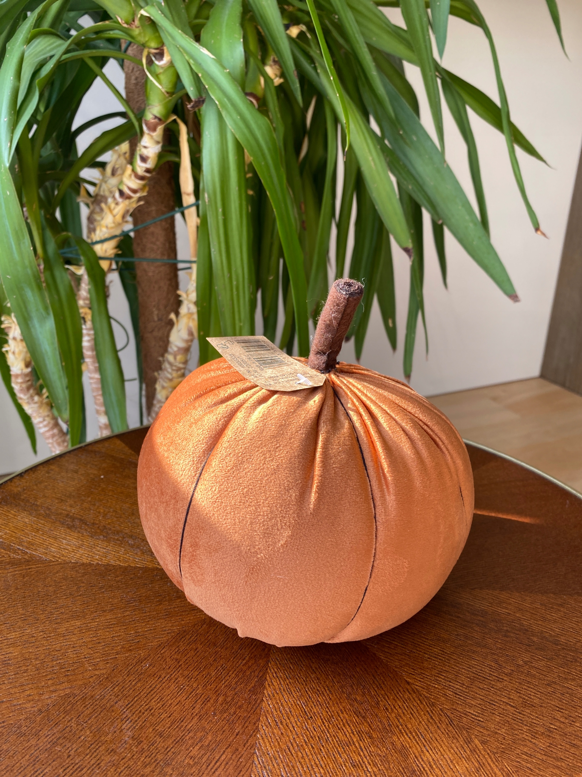 Размеры тыквы примерно 20 см х 20 см (с хвостиком)