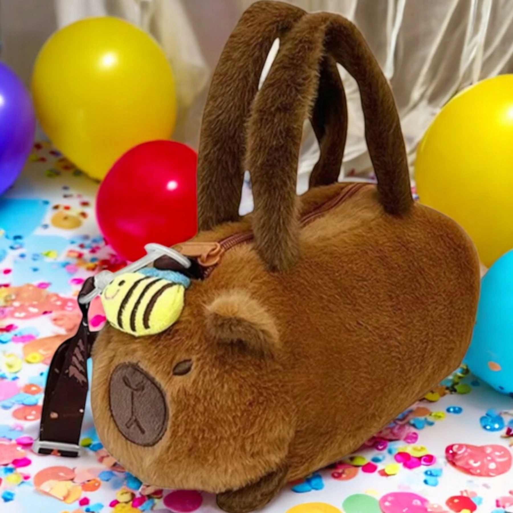 спроектирована в форме капибара, впечатляет очаровательными деталями, такими как маленькая пчела, мягкие уши и вышитый рот. Это идеальное сочетание функциональности и сладкого дизайна. Идеально подходит для девушки, которая любит приятные материалы и удобные аксессуары