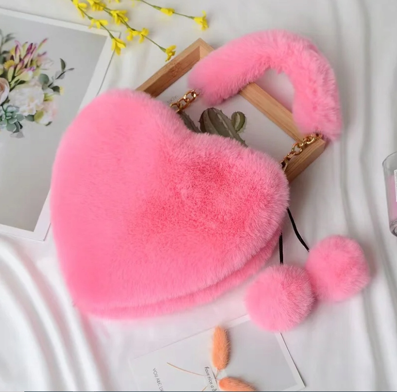 ПЛЮШЕВА СУМКА У ФОРМІ СЕРЦЯ З ЛАНЦЮЖКОМ НА ПЛЕЧІ