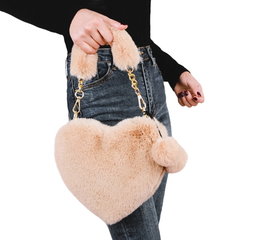 ПЛЮШЕВА СУМКА У ФОРМІ СЕРЦЯ З ЛАНЦЮЖКОМ НА ПЛЕЧІ
