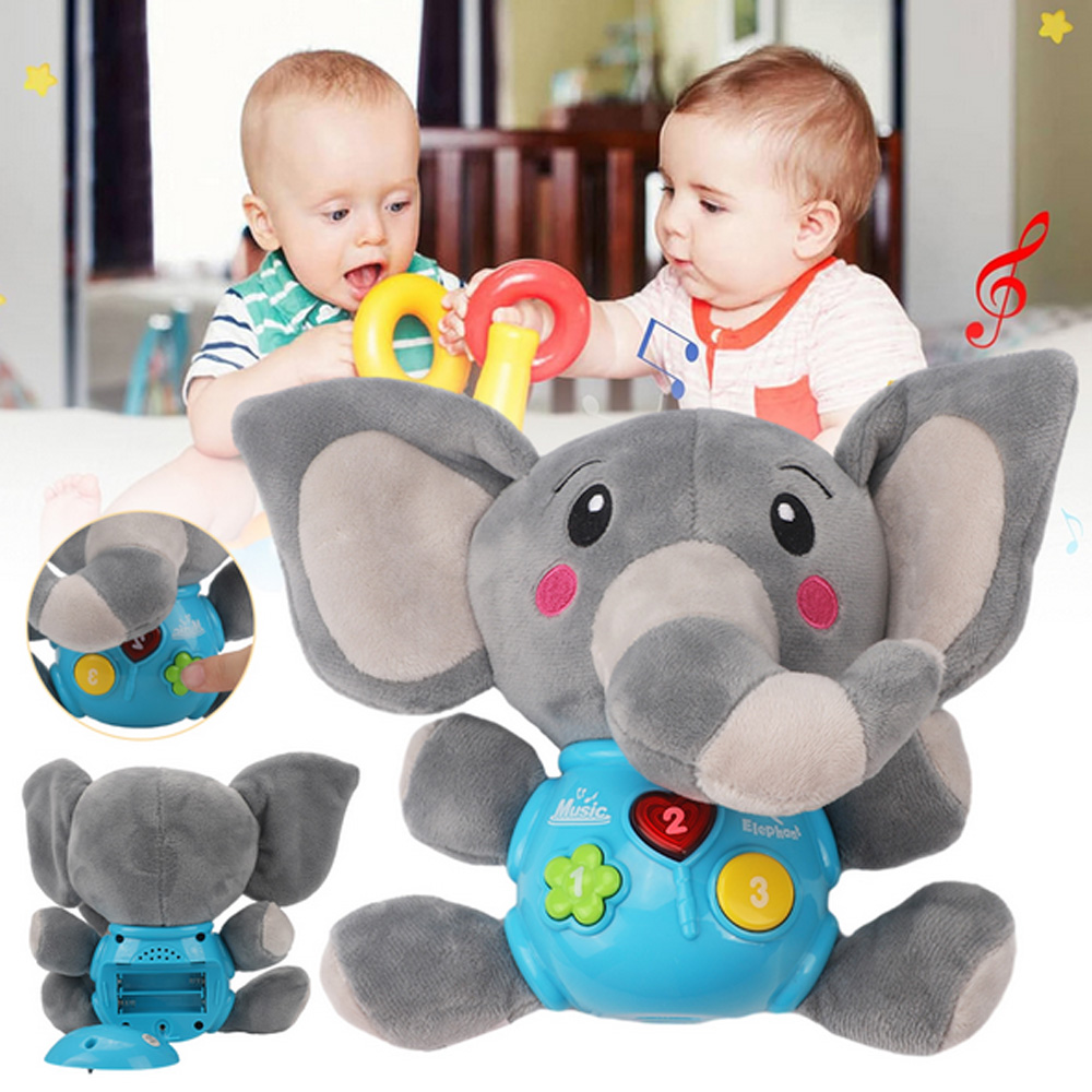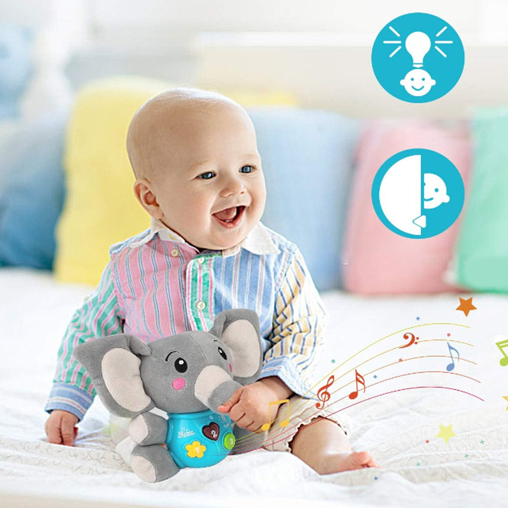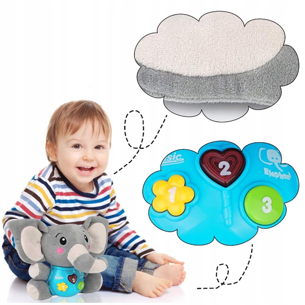 ПЛЮШЕВИЙ ІНТЕРАКТИВНИЙ СЛОНЕНИК, МУЗИЧНА ІГРАШКА ДЛЯ МАЛЮКІВ, 12 ПІСЕНЬ