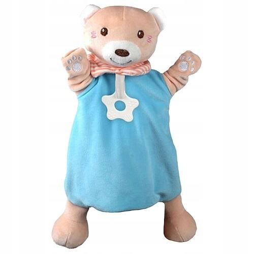 Плюшевый марионеток - хорошая игрушка, посвященная ребенку с рождения. Благодаря своей уникальной структуре он стимулирует разум ребенка во многих областях. Прежде всего, он развивает зрение, слух и прикосновение. Медведь - плюшевая кукла, которая развлечет ребенка. Идеально подходит для игры в театре и играть роли. В головке игрушки, тонкой песчаной отмели и на полосатой ленте звезда резинового укуса с разными конструкциями.