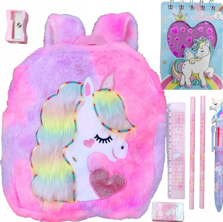 ПЛЮШОВЫЙ РЮКЗАК «ЕДИНОРОГ» ДЛЯ ДЕТСКОГО САДА, ВОЛОСАТЫЙ UNICRON+ БЕСПЛАТНАЯ ШАРИКОВАЯ РУЧКА UNICORN+ БЛОКНОТ UNICORN+2 КАРАНДАША, ЛИНИРОВКА, Ластик И WRAE