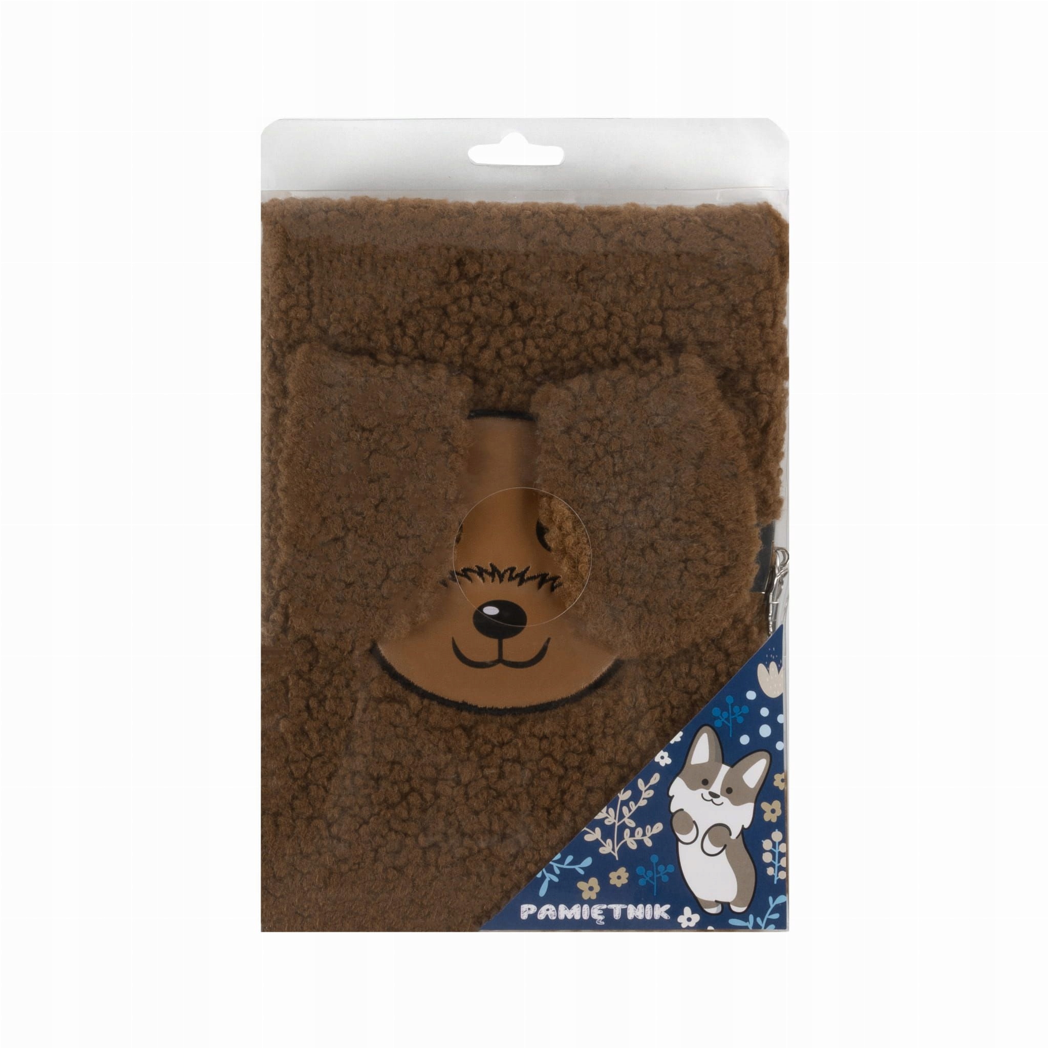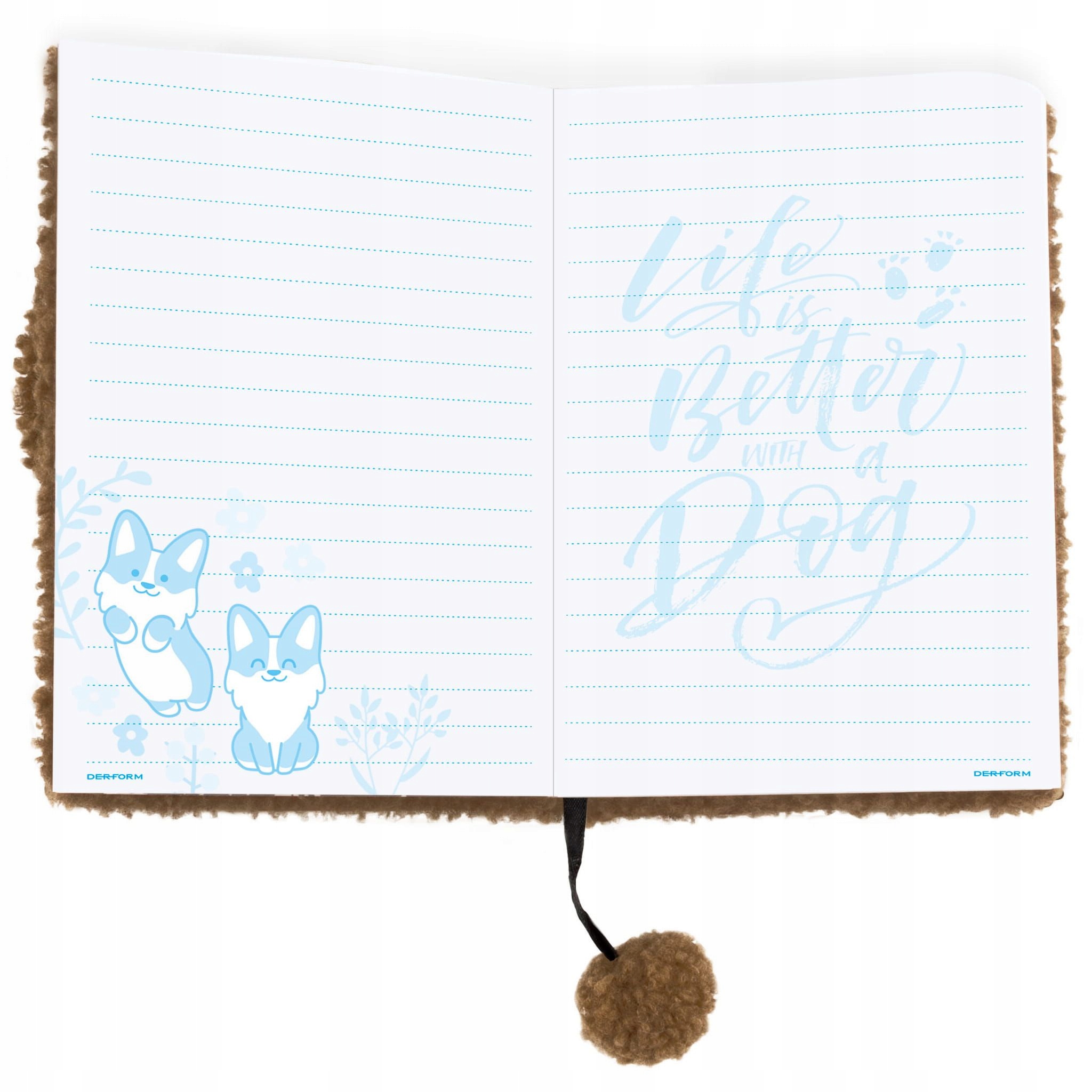 Меховой блокнот с изображением собаки на обложке.
