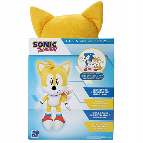 Есть застежки-липучки на руках, чтобы он мог соединяться с другими большими плюшевыми игрушками из мира Соника, как в видеоигре.
