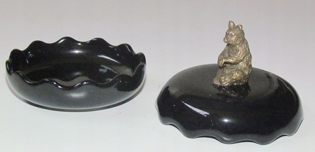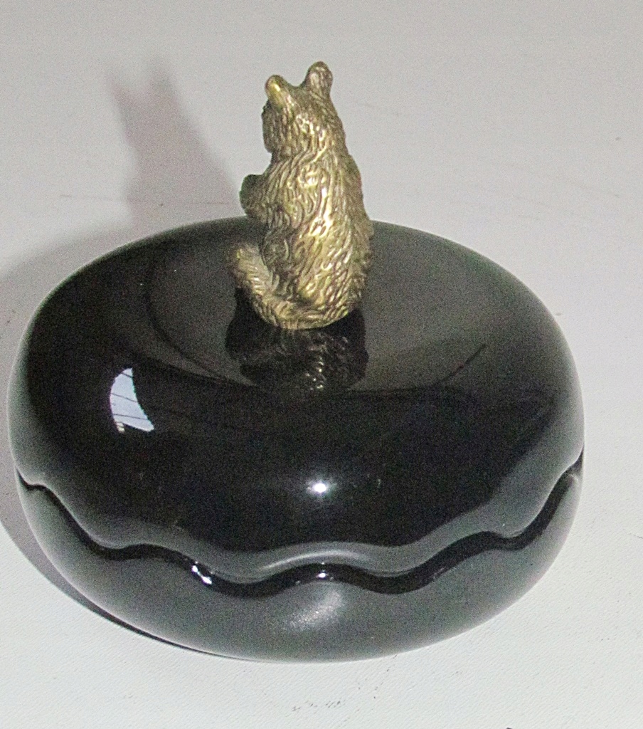Новая, неиспользованная. Черный фарфор. Дополнительный декоративный элемент – латунь, создающая оригинальную отделку в виде мишки. Сахарница очаровательная и шикарная, она обязательно станет украшением и полезной вещью в вашем доме.