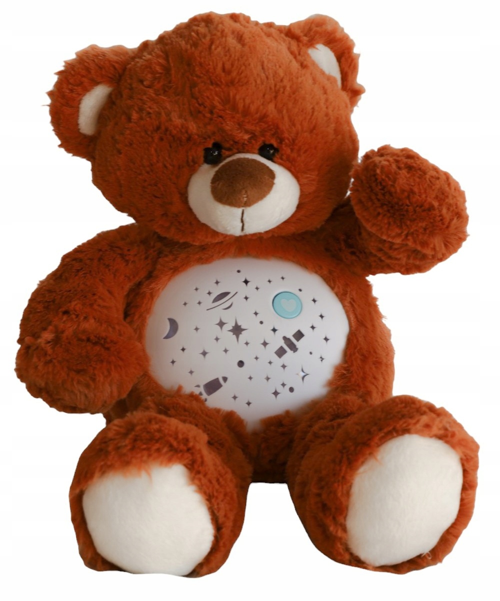 Представляем незаменимого спутника мечты вашего ребенка - Мишка Тедди-проектор с успокаивающей музыкой известного бренда Sferazabawek. Этот очаровательный плюшевый мишка, предназначенный для малышей с первых дней жизни, представляет собой сочетание мягкой игрушки и инновационного проектора, который помогает малышам заснуть под нежный свет и расслабляющие мелодии.