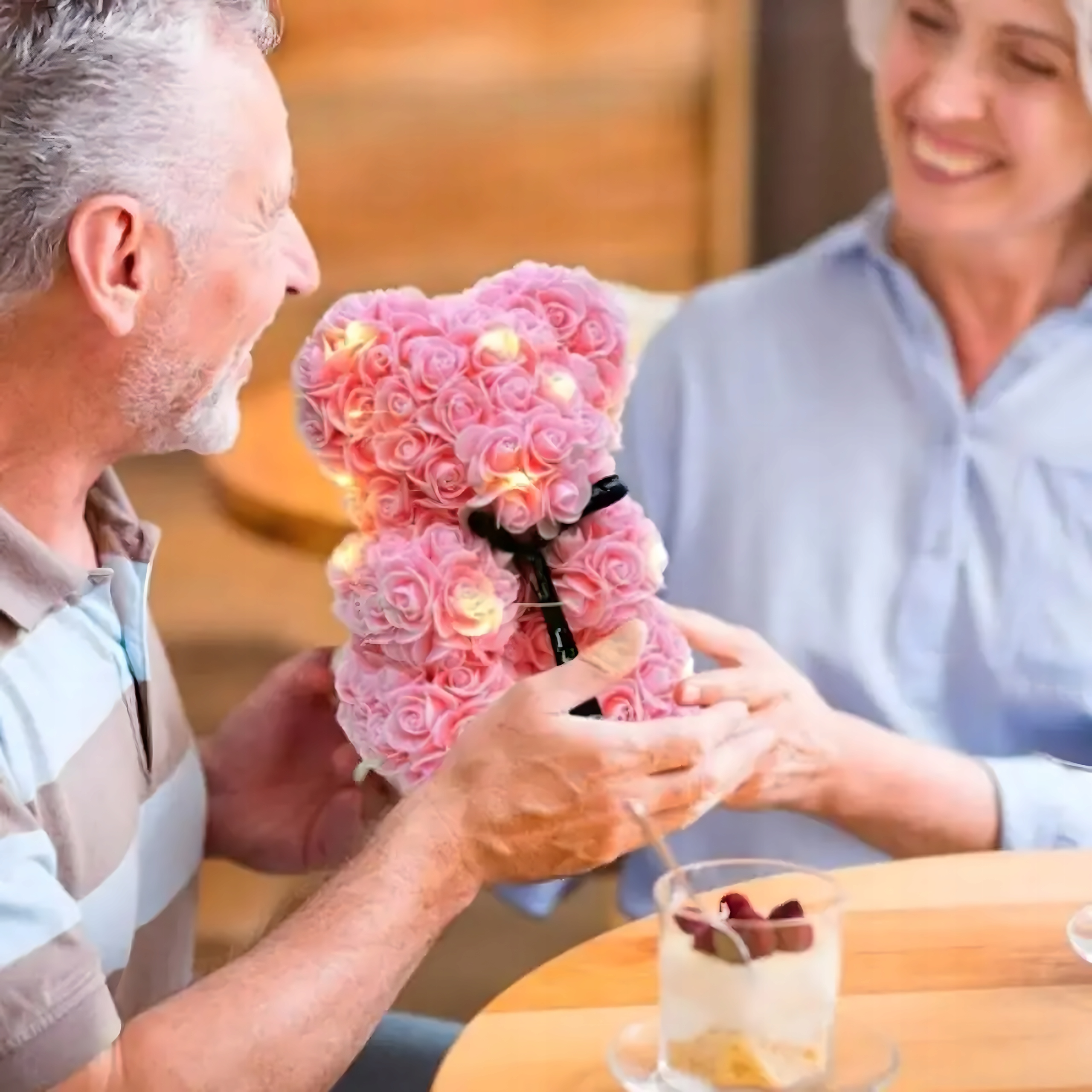 Плюшевый мишка со светодиодными розами, подарок для мамы и девочки, набор «Вечная роза для бабушки», 25 см