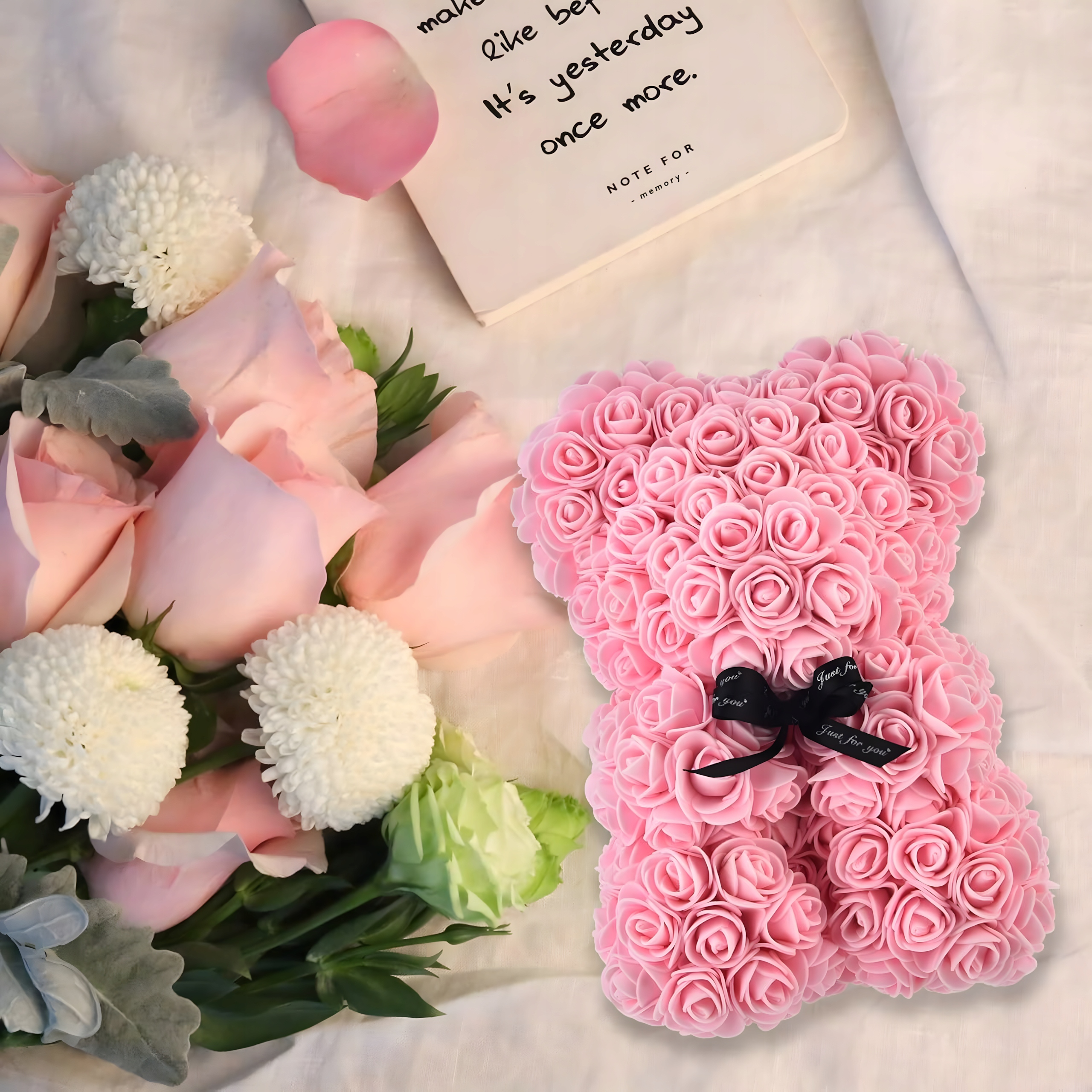 Мишка изготовлен из высококачественного пенопласта (ПЭ), который прочный, мягкий и выглядит как настоящие цветы.