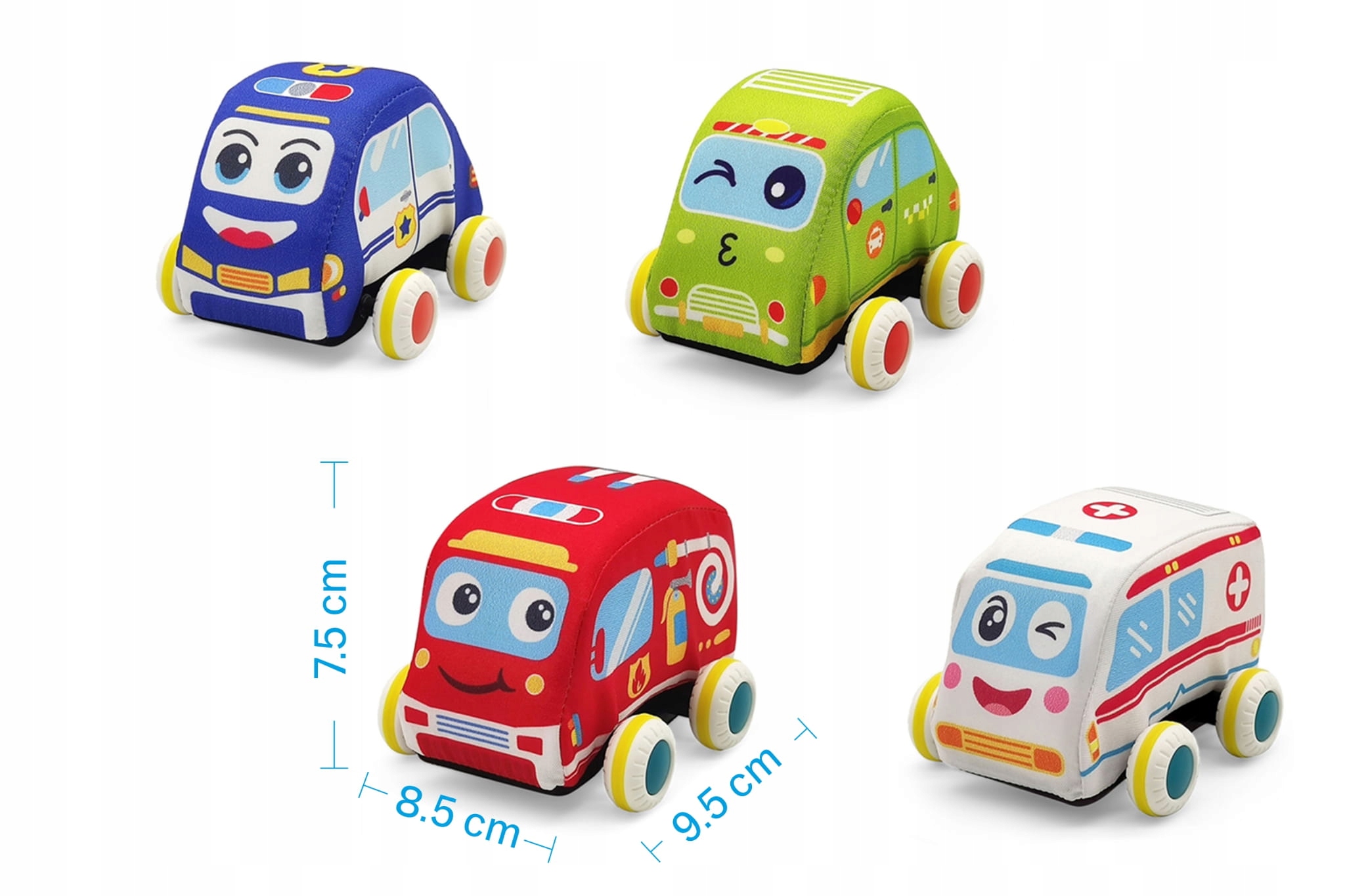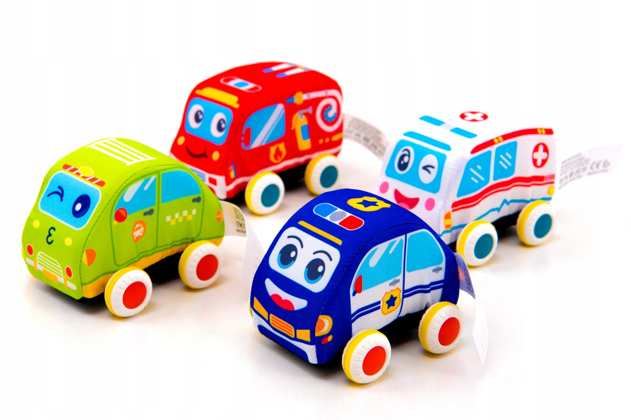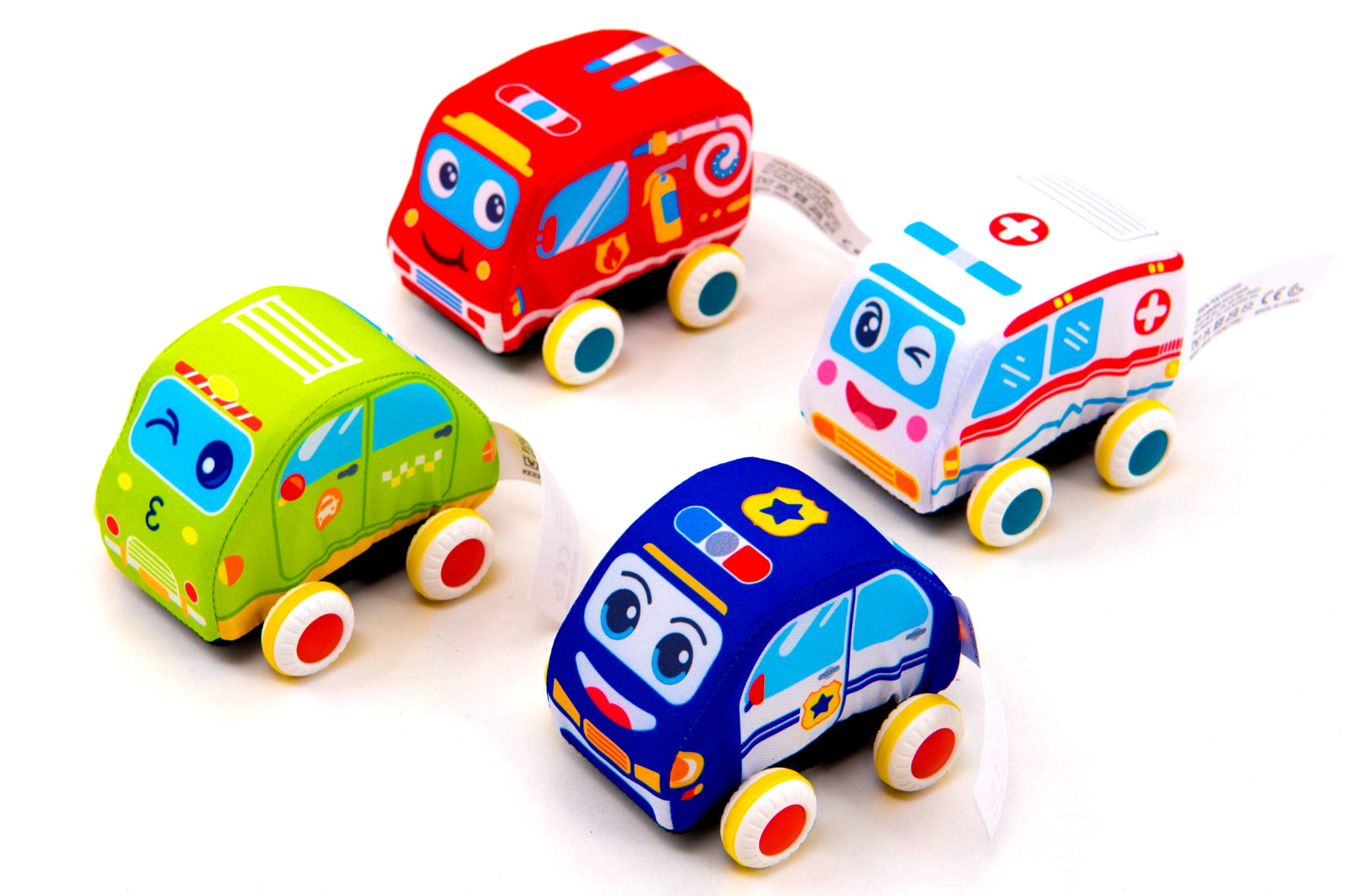 Набор содержит четыре мягких автомобиля: пожарная бригада, полицейская машина, скорая помощь и такси, каждая из них спроектирована с вниманием к деталям, чтобы воспроизвести различные спасательные и сервисные транспортные средства. и приятно к Touch , что делает их идеальными игровыми спутниками даже для самых молодых.