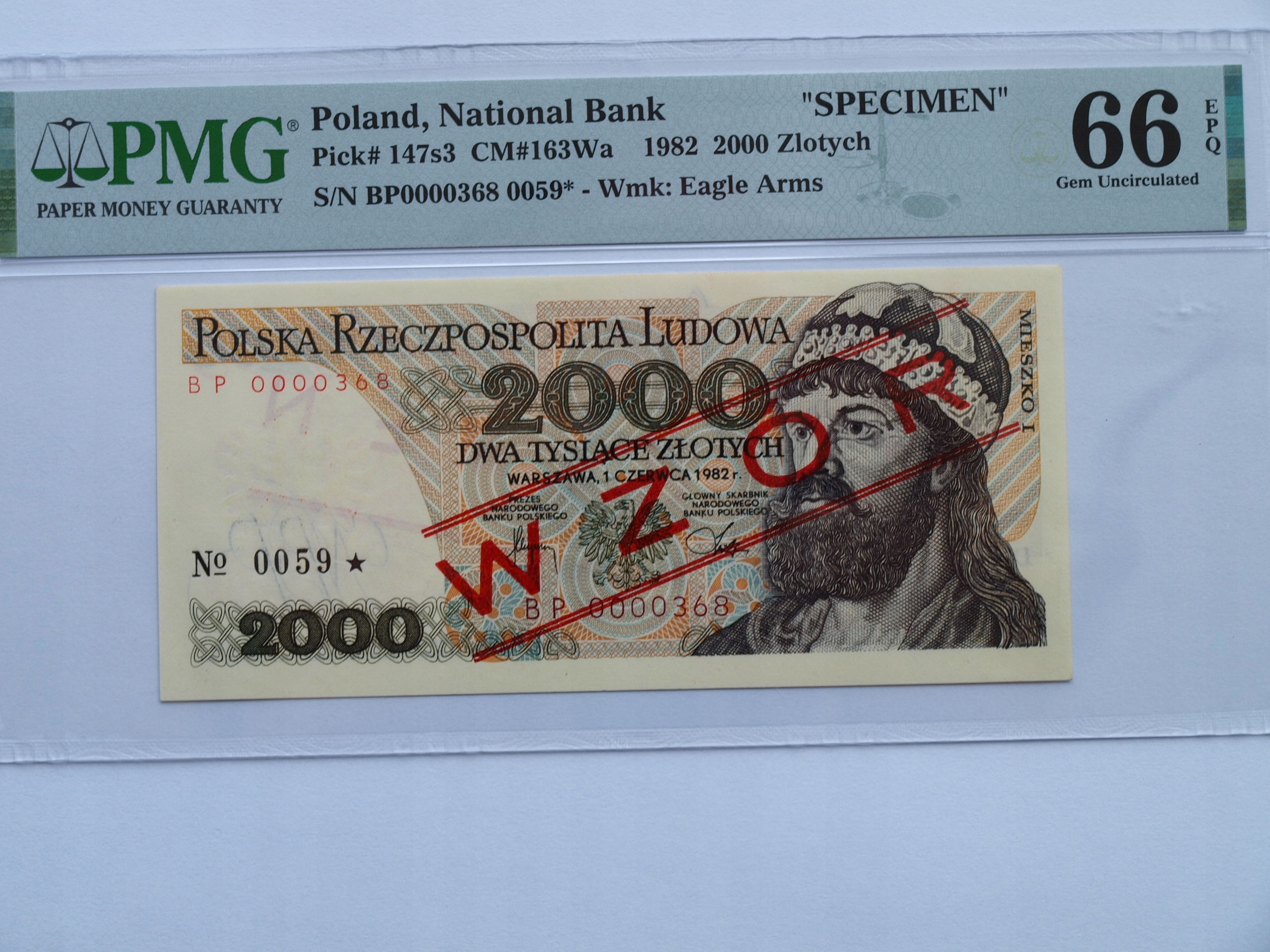 PMG66 2000 PLN 1982 серія BP 0000 368 WWÓR / ЗРАЗОК
