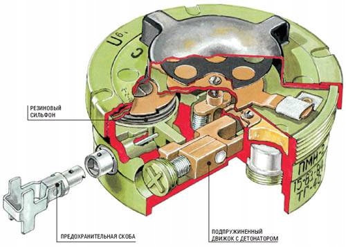 Конструкция этой мины предусматривала ее постоянную готовность к применению. Единственная операция, которую выполнил шахтер, — это повернуть и вытащить предохранительную защелку. Благодаря этому его смог настроить даже плохо обученный солдат.
