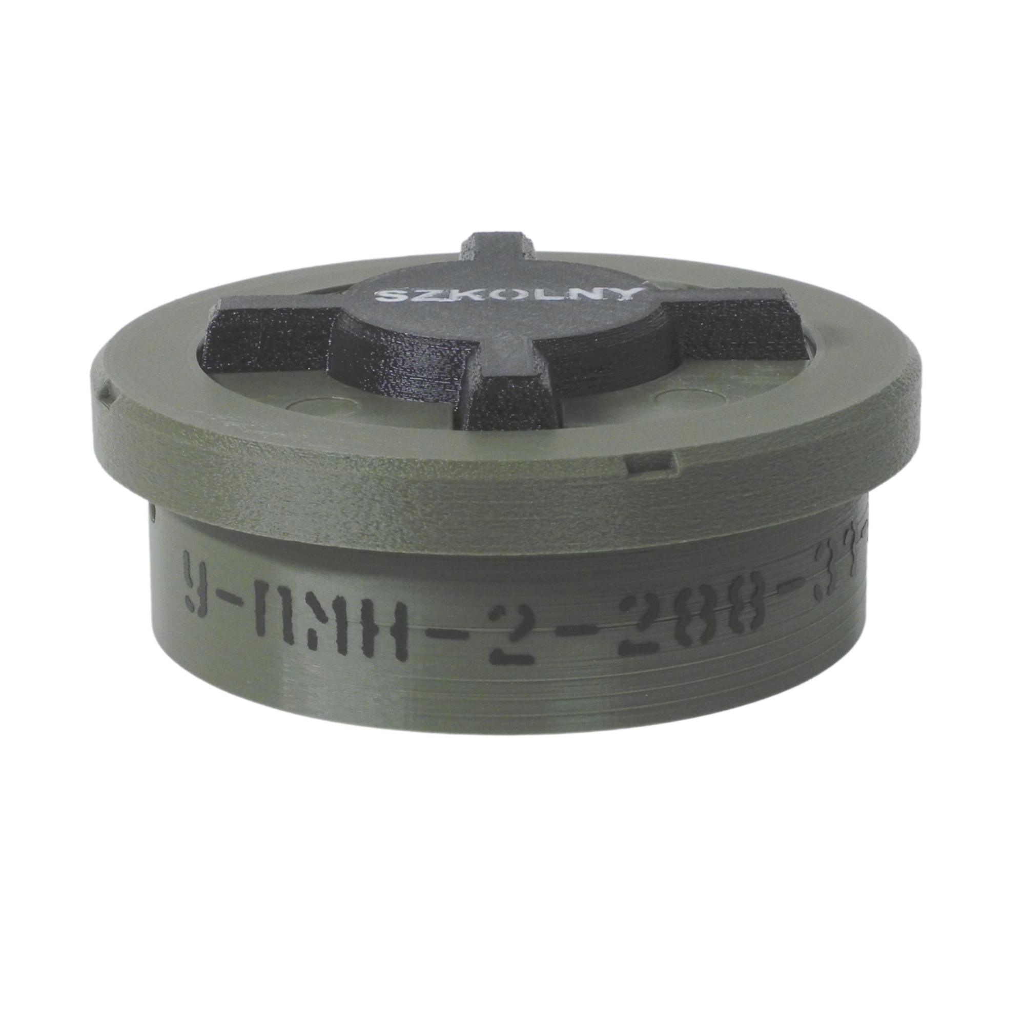 Наша реплика изготовлена из пластика оливкового цвета. Дополнительно часть его отмечена белой надписью - Школа, для информации о том, что это копия и для облегчения поиска.