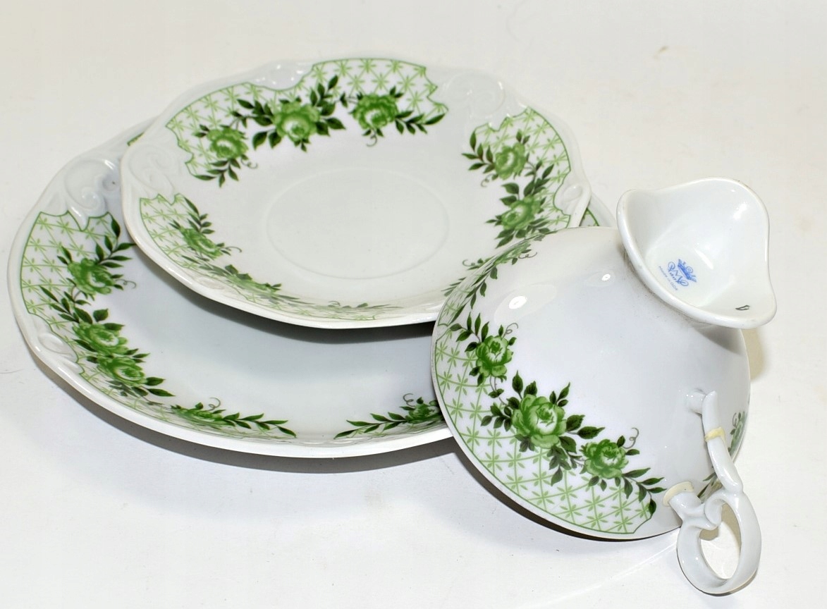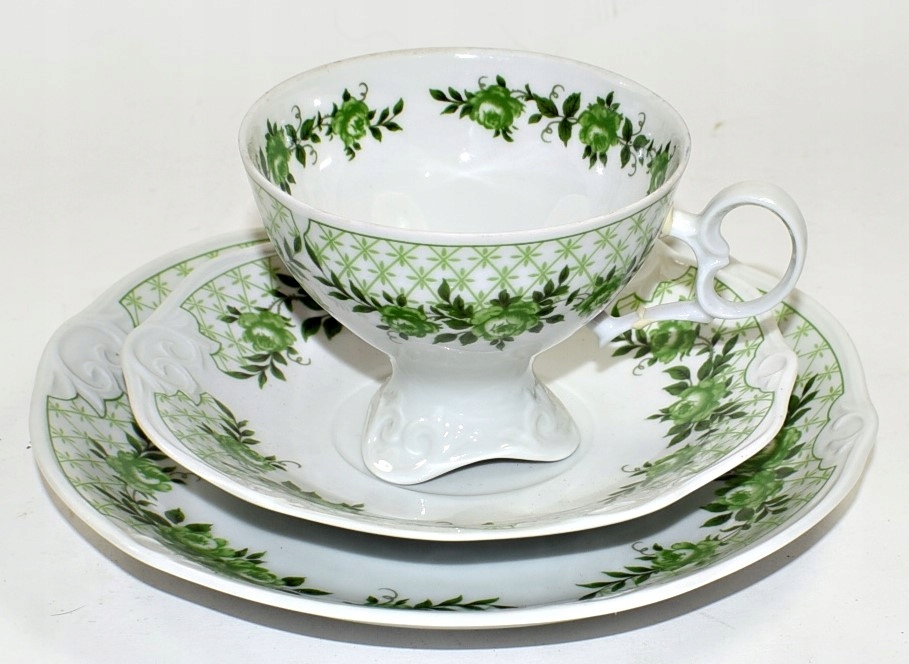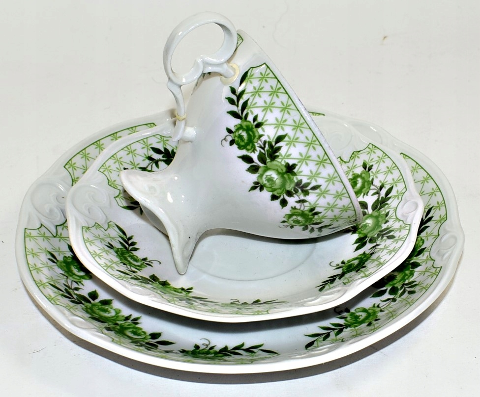 Красивый, старинный и большой сервиз для завтрака, выполненный из белого фарфора, украшенный рельефами и чудесными цветами, - прекрасная чайная или кофейная жемчужина. Комплект с чашкой на ножках.