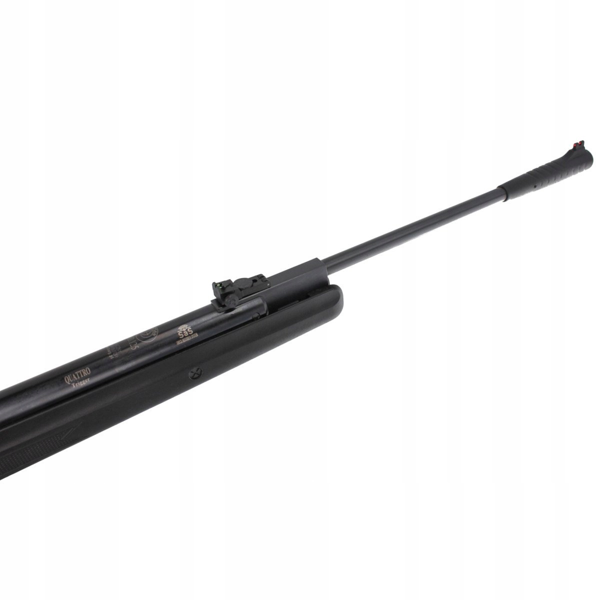 Мы имеем дело здесь с классическим заряжанием методом «ломания ствола». Карабин стреляет пулями диаболо калибра 5,5 мм, а нарезной ствол диаметром 500 мм гарантирует точность и повторяемость попаданий. Механизм системы амортизации поглощает большую часть энергии во время выстрела. Система SAS не только удобна в использовании, но и значительно продлевает срок службы внешнего механизма. Он также защищает оптику от ударов. Пневматический пистолет оснащен двухступенчатым спусковым крючком Quattro, который позволяет регулировать длину хода спускового крючка и сопротивление. В случае поломки ствола автоматически срабатывает защита, что существенно влияет на безопасность. Перед съемкой отключите функцию безопасности. Пневматическая винтовка Optima by Hatsan 125 STG Sport Vortex калибра 5,5 мм сочетает в себе высокую точность попадания и удобство в использовании.