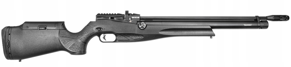 Daystar RG Современная пневматическая винтовка PCP с практичной ложей из прочного полимера. Оснащен рычагом взведения Side Lever, регулятором давления, стволом с резьбой, компенсатором отдачи и регулируемым спусковым крючком, затыльником и щечным упором. Карабин обладает высокой энергетикой, а выпущенные пули легко пробивают бутылки, банки, доски и даже тонкий листовой металл. Разумеется, пневматический пистолет идеально подходит для стрельбы по мишеням, обеспечивая хорошую фокусировку и повторяемость.