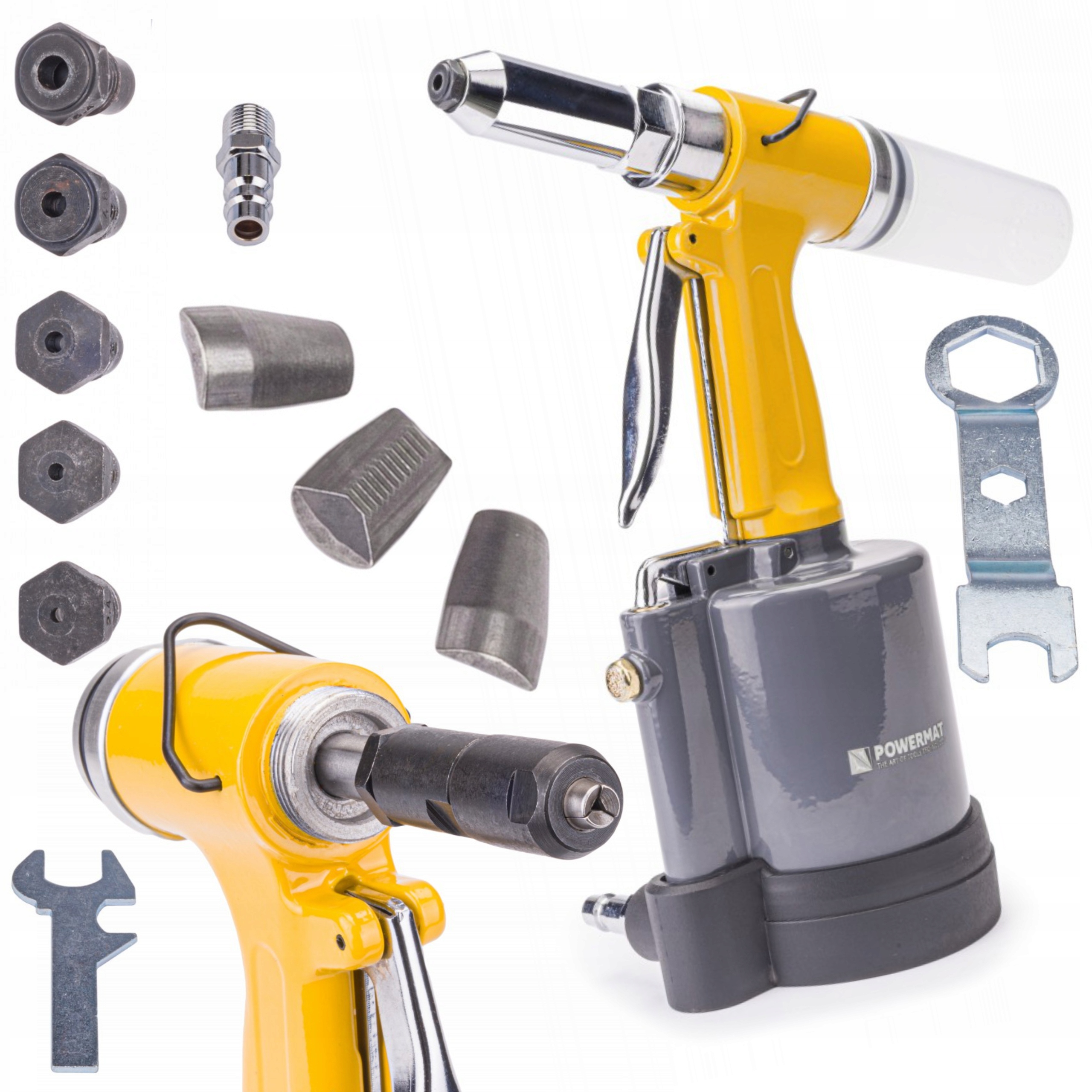 Высококачественный пневматический заклепочник, предназначенный для использования с вытяжными заклепками диаметром от 2,4–6,4 мм. Позволяет выполнять прочные соединения заклепками из алюминия, нержавеющей стали, стали и меди. Клепальная машина оснащена контейнером, предназначенным для сбора отходов, образующихся в процессе клепки. Заклепочник идеально подходит для использования на производственных предприятиях.