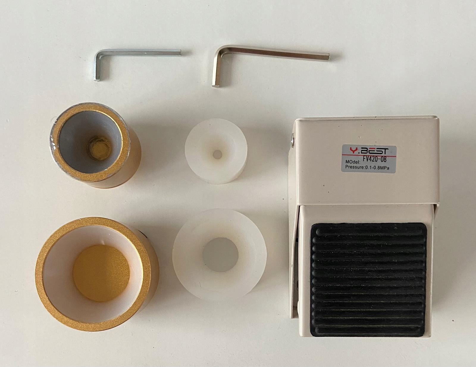 XGP — компактная пневматическая укупорочная машина, идеально подходящая для закрытия стандартных круглых крышек диаметром от 10 до 50 мм. Легкий и простой в использовании, оснащен ножной педалью для точного управления и быстрой работы. Сменные укупорочные головки и регулируемый диапазон высоты бутылки делают его разумным решением для небольших производственных линий, лабораторий и упаковочных станций.