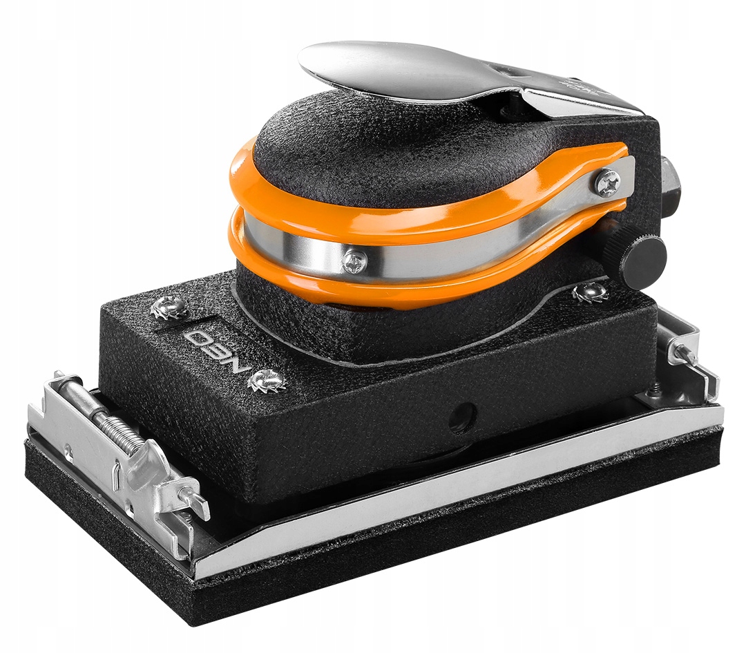 Пневмо-орбитальная шлифовальная машина прямоугольного сечения NEO 14-018 NEO позволяет эффективно и результативно шлифовать большие поверхности. Благодаря подаче сжатого воздуха он пригоден для длительной эксплуатации. Он оснащен удобной ручкой, повышающей комфорт работы за счет снижения вибрации, а также металлическими зажимами, позволяющими использовать нарезанную из рулона наждачную бумагу. Инструмент также имеет универсальное воздушное соединение диаметром 1 дюйм. Выход воздуха расположен в задней части кофемолки.