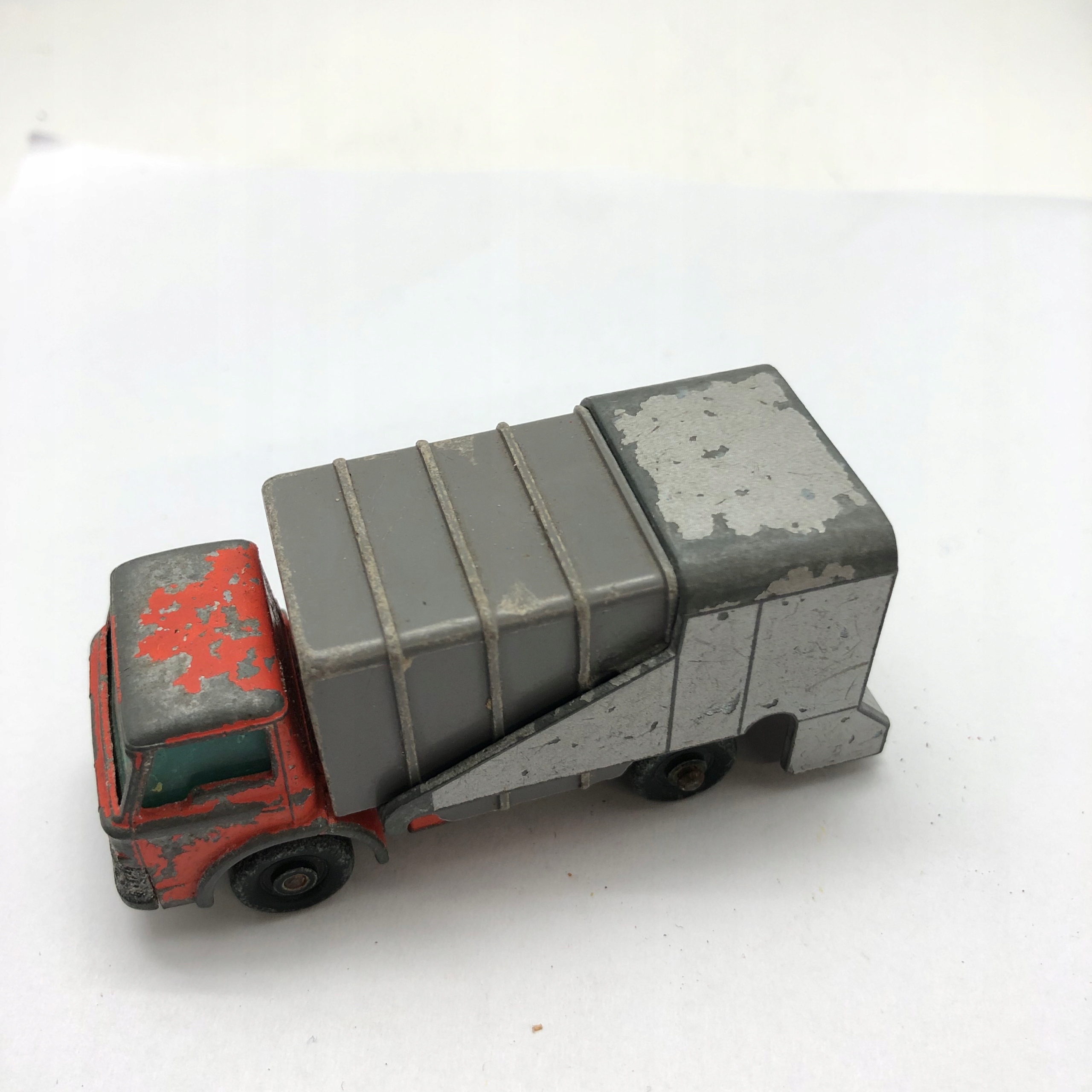 Спичечный коробок №7 Мусоровоз - классический мусоровоз Ford, 1960-е годы, оранжевый, оригинальные обычные колеса, сдвижная задняя часть для разгрузки, предмет коллекционирования, очень хорошее состояние.
