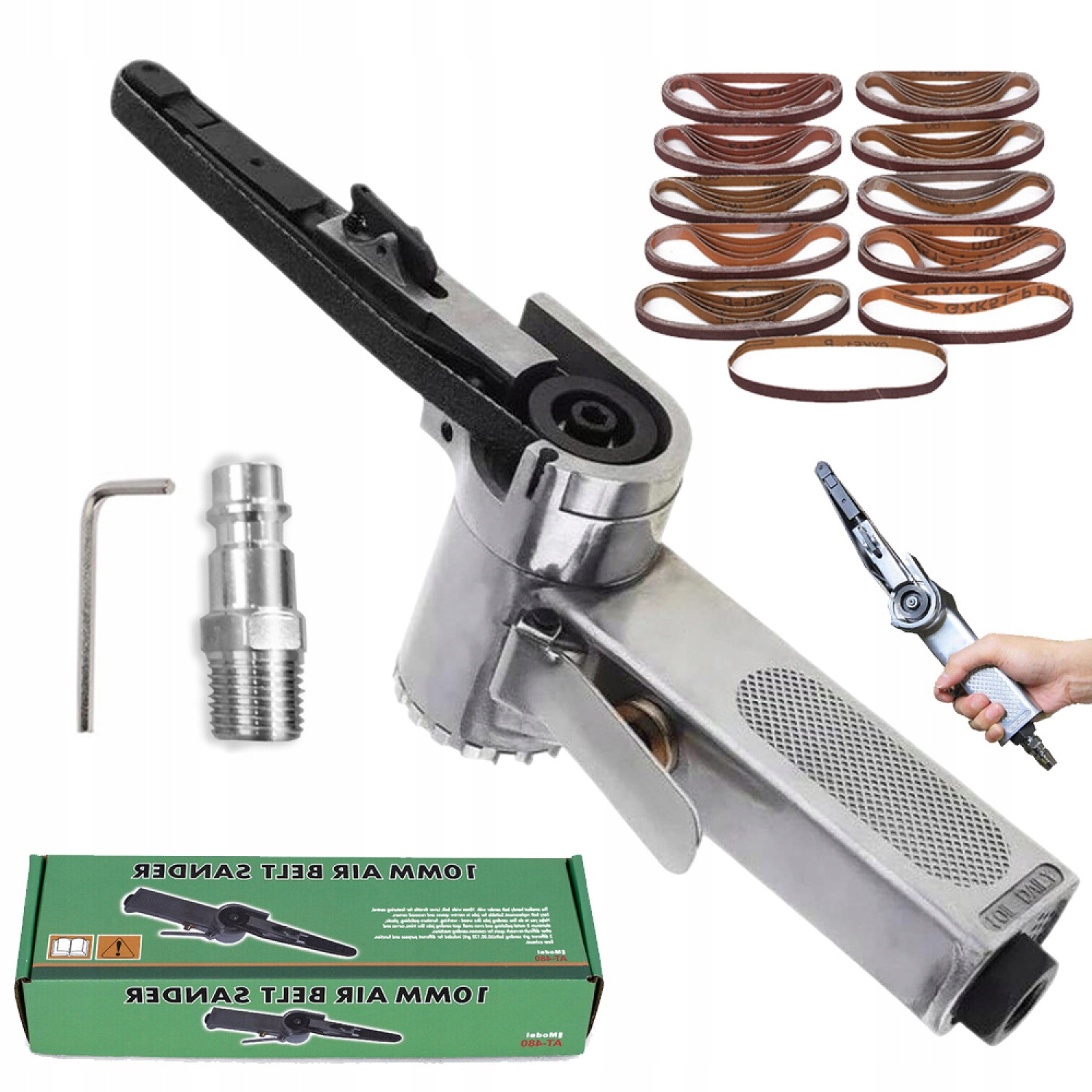 ПНЕВМАТИЧЕСКАЯ ЛЕНТОЧНО-ШЛИФОВАЛЬНАЯ МАШИНА 330*10ММ 16000 ОБ/МИН + БЕСКОНЕЧНАЯ РЕМЕНЬ 25ШТ.