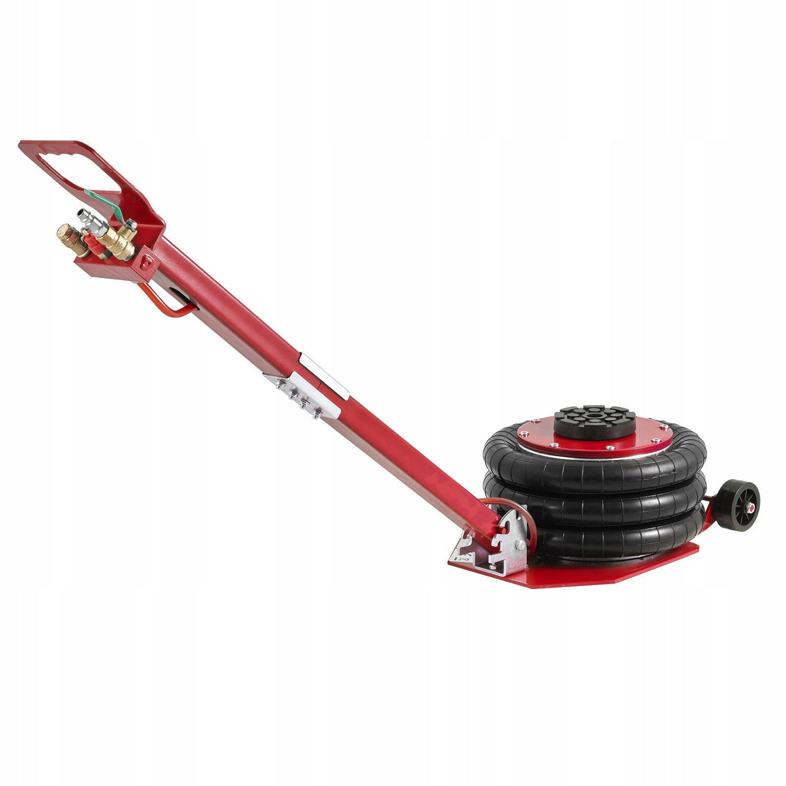Подъем подушки безопасности оснащен регулируемой длинной ручкой (угол ручки может быть отрегулирован) и двумя колесами, что позволяет легко маневрировать и устанавливать подъемник под автомобилем, не напрягая спину.