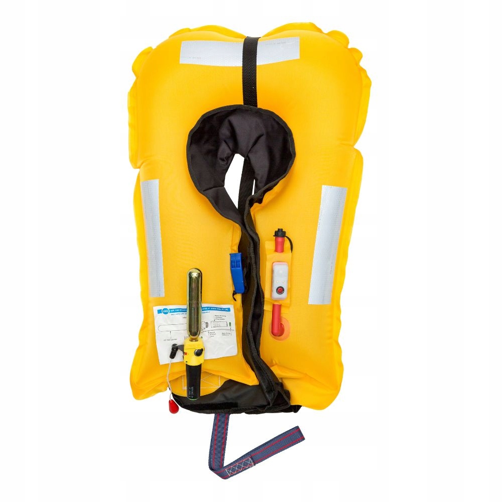 Пневматический спасательный жилет, предназначен для взрослых. (Полностью автоматический). Он активируется автоматически после падения в воду или вручную, потянув за рукоятку, идущую от спускового механизма, который прокалывает картридж и наполняет жилет СО2. Его также можно надуть через трубку для последующего сдувания. Жилет имеет спасательную проушину и пряжку (из нержавеющей стали). В комплект входит чехол, свисток и 1 картридж СО2 (33гр). Высокое качество изготовления!