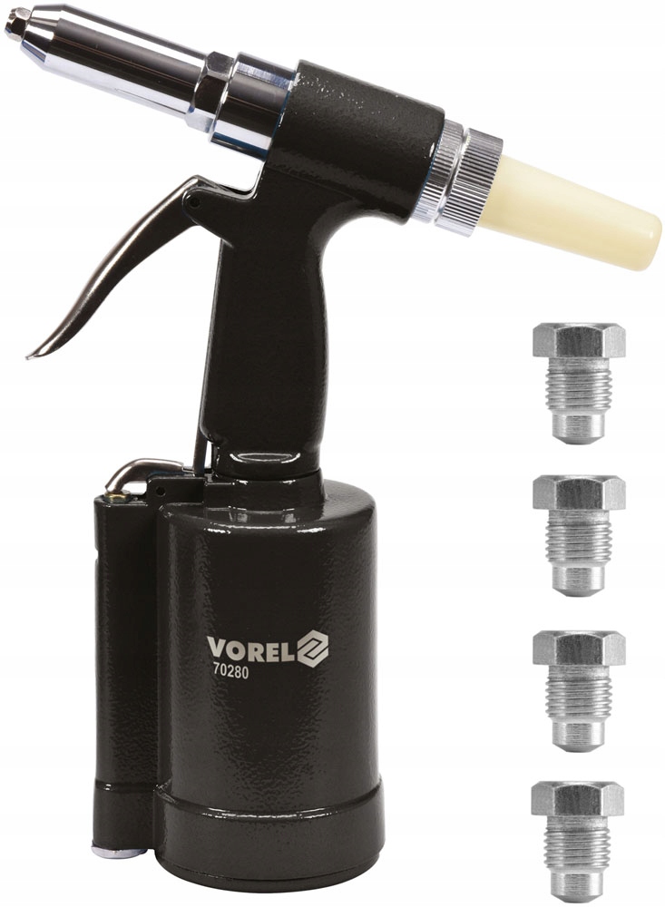 - 4 сменных наконечники позволяют работать с заклепками различного диаметра