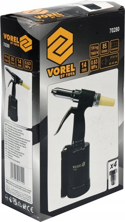 - Диаметр поддерживаемые заклепки [мм]: 2,4; 3,2; 4,0; 4,8