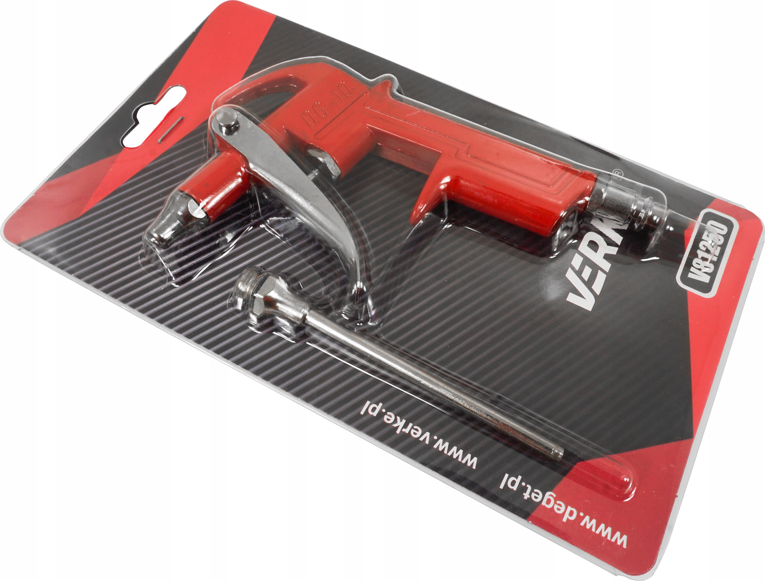 Blowing Pun с длинным сопло DG10 Verke -это надежный инструмент для очистки твердых мест. Благодаря длинному сопло , сильного воздушного потока и эргономической ручки , пистолет обеспечивает точную и эффективную очистку . Это отличный выбор для всех, кому нужен эффективный инструмент для удаления пыли, пыли и других примесей в жестких пространствах, как в промышленности, так и в семинарах или на дому.