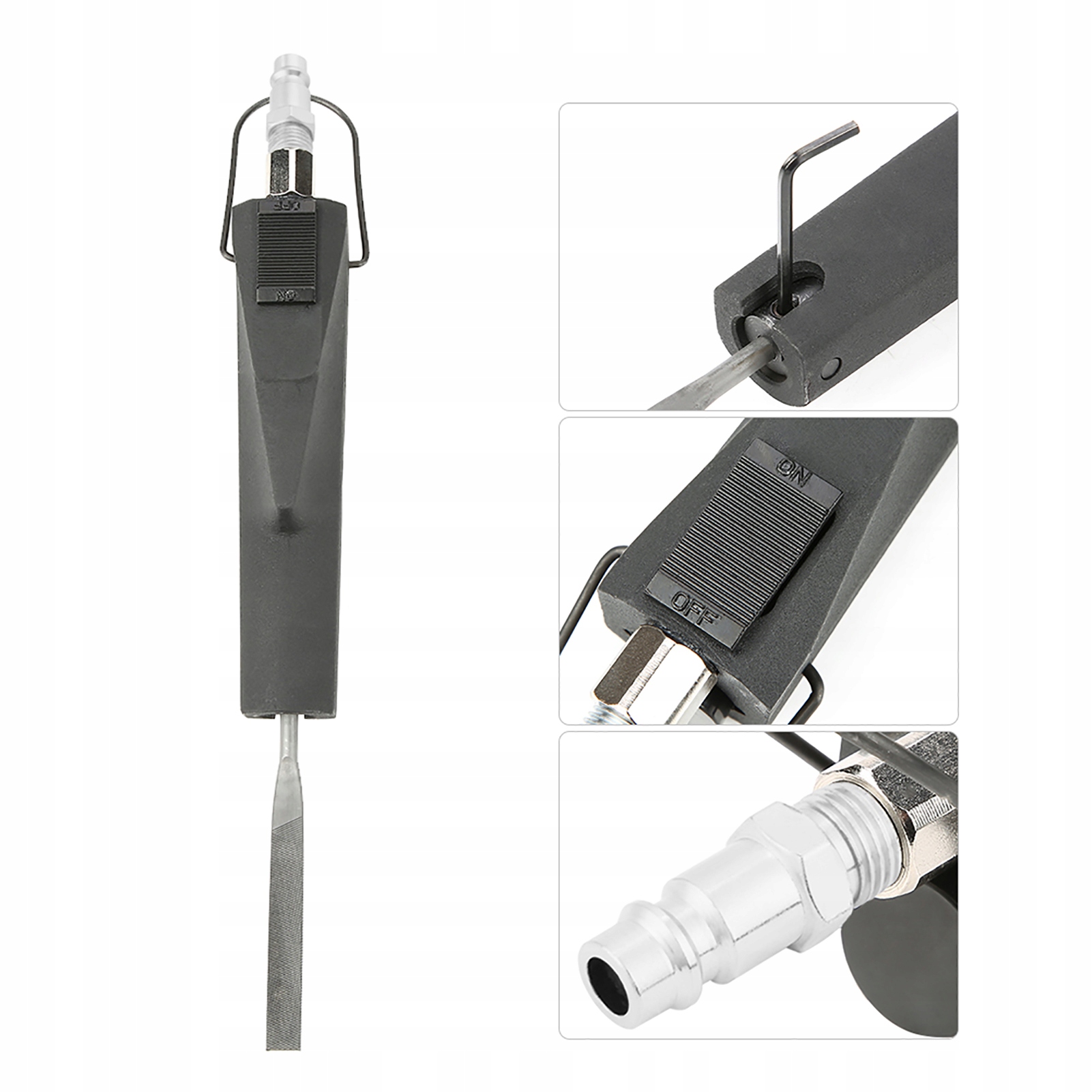 Пневматический напильник с пневматическим приводом включает в себя 1 плоский напильник, 1 BG.